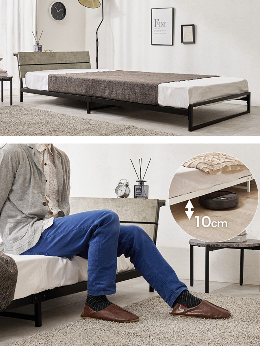 無駄なく美しいスチール製のロータイプベッド