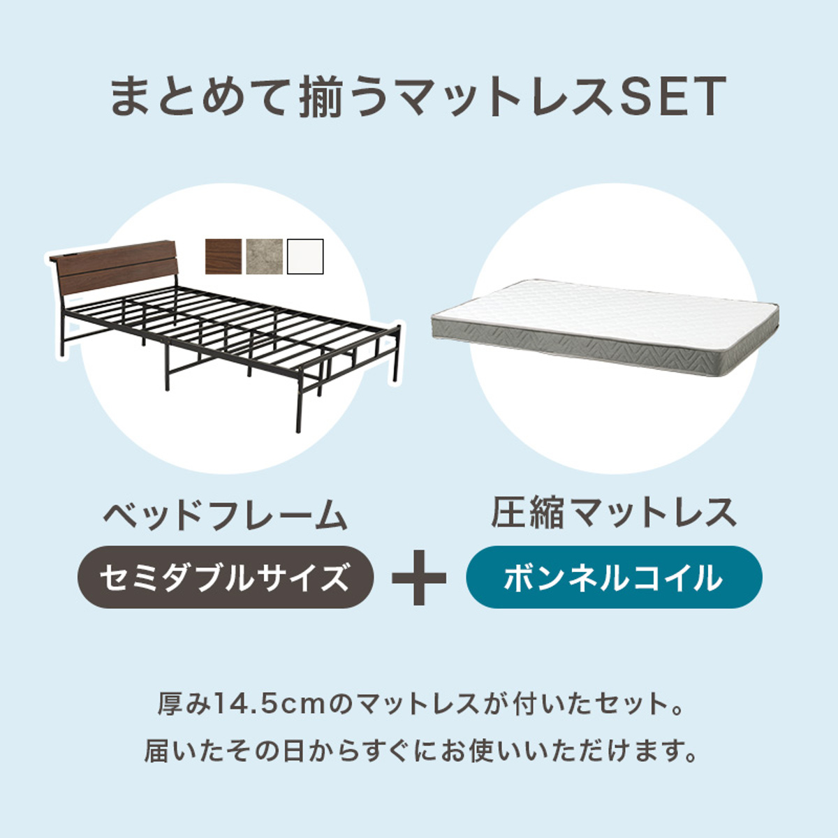 ![]() マットレス付き ボンネルコイル シングル | ![]() マットレス付き ポケットコイル シングル | ![]() マットレス付き ボンネルコイル セミダブル 【▲このページの商品】 |