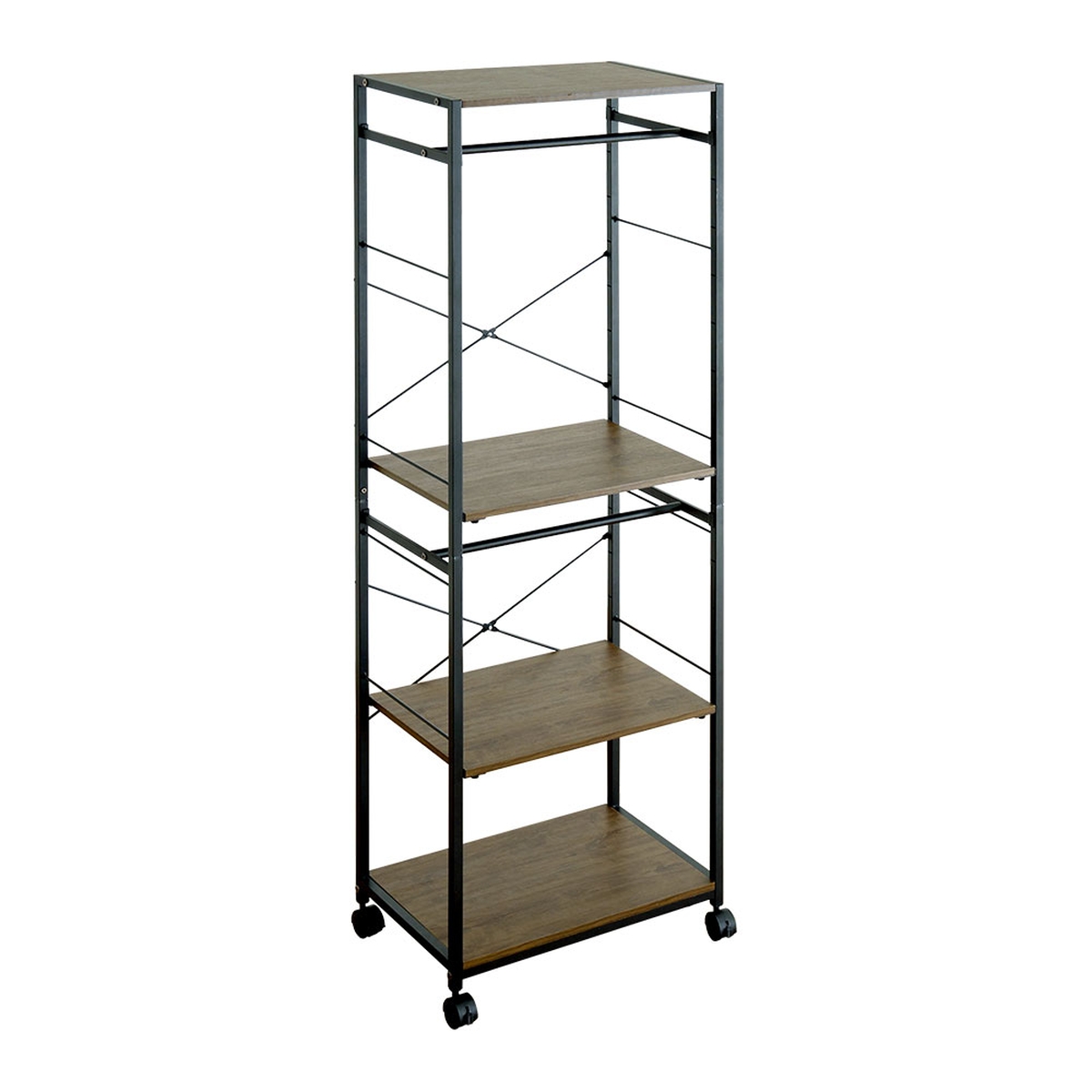 可動棚は、専用パーツでしっかりと固定できるため棚がずれ落ちる心配がなく安心です。筋交いは製品の歪みを抑えます。