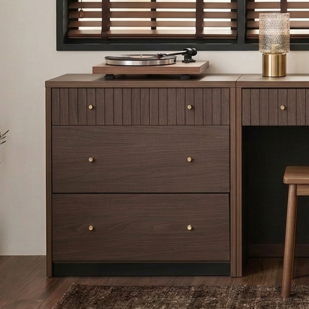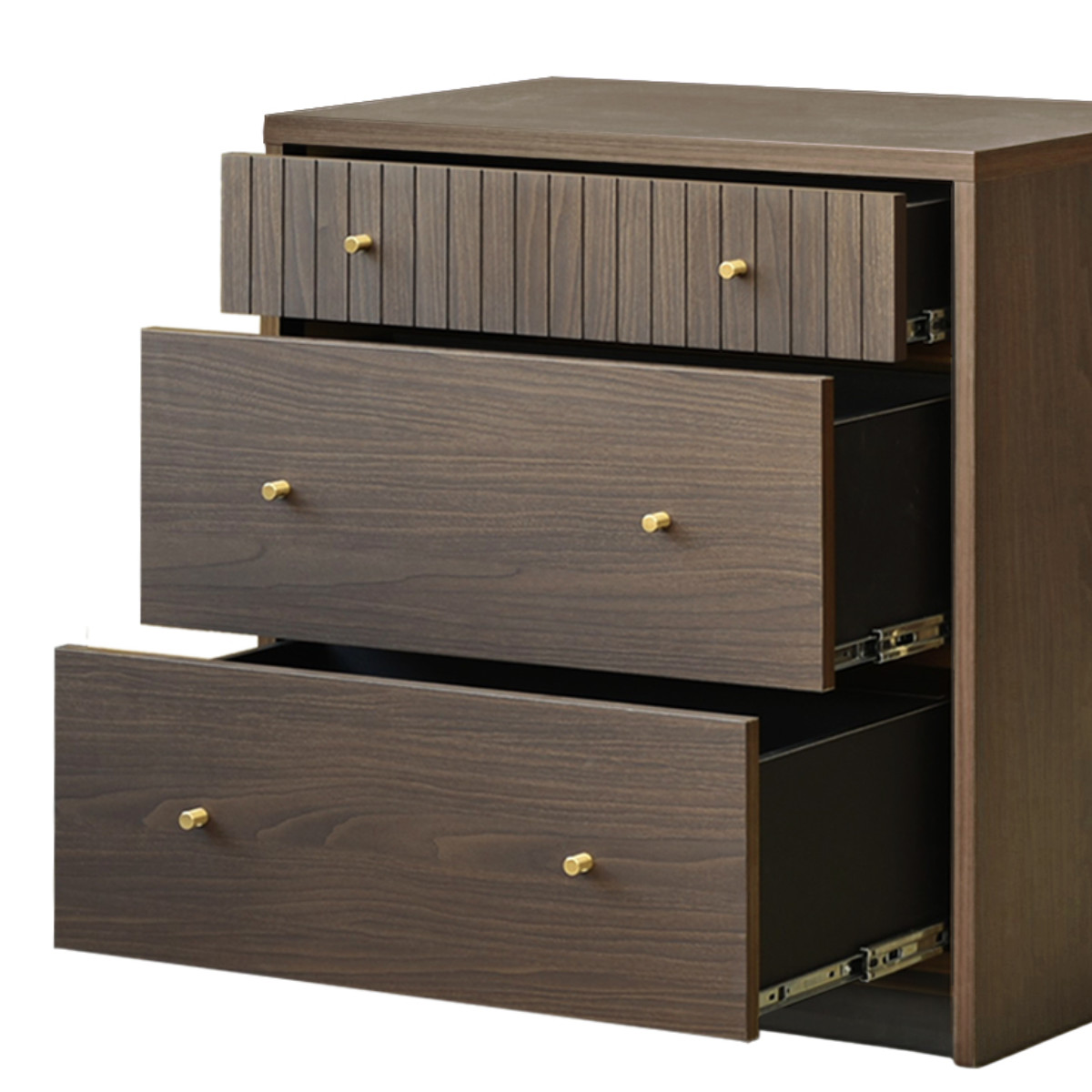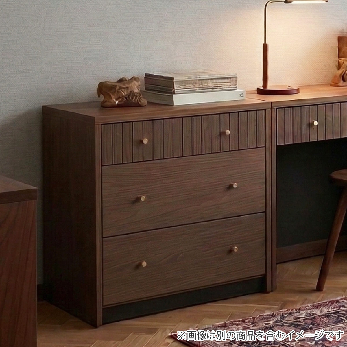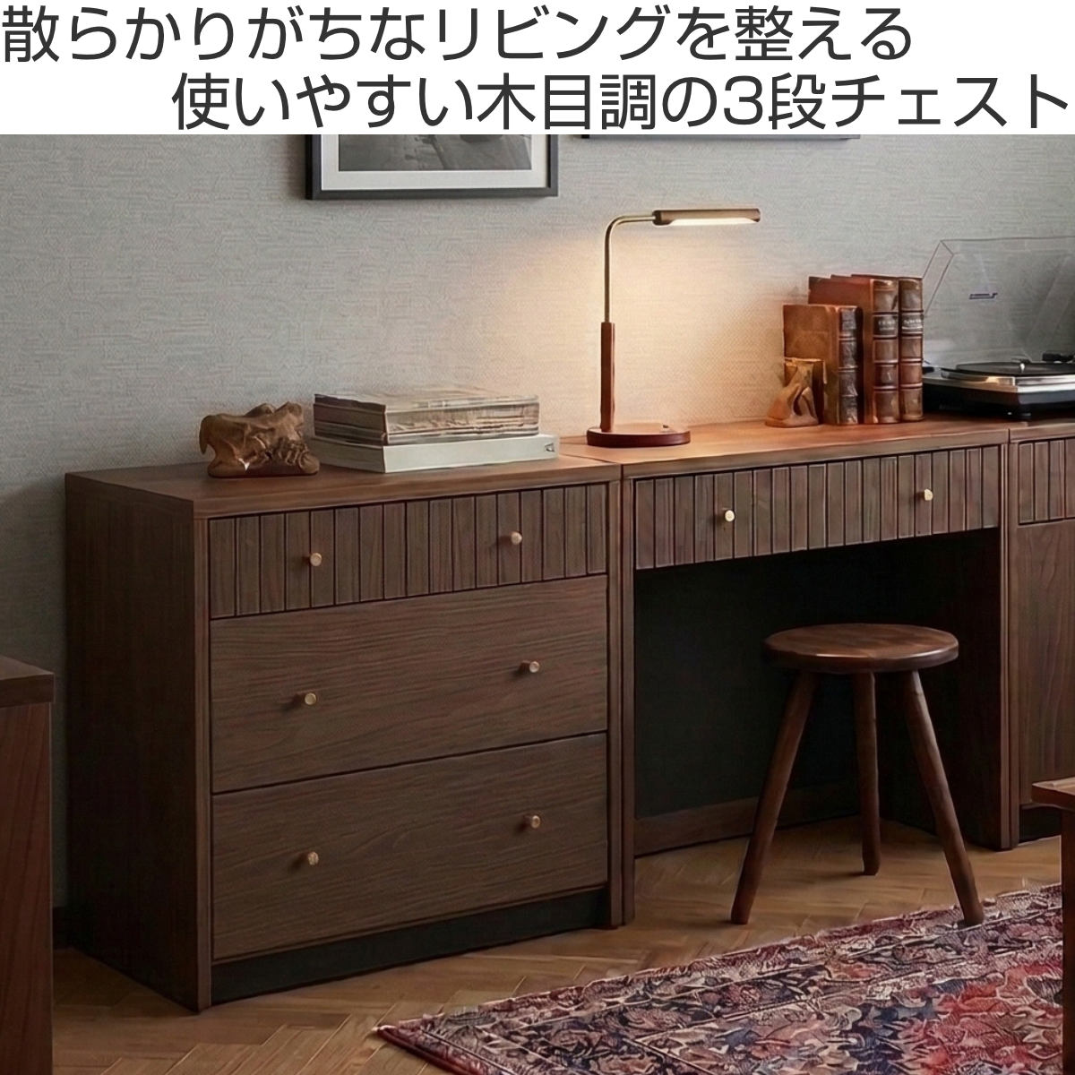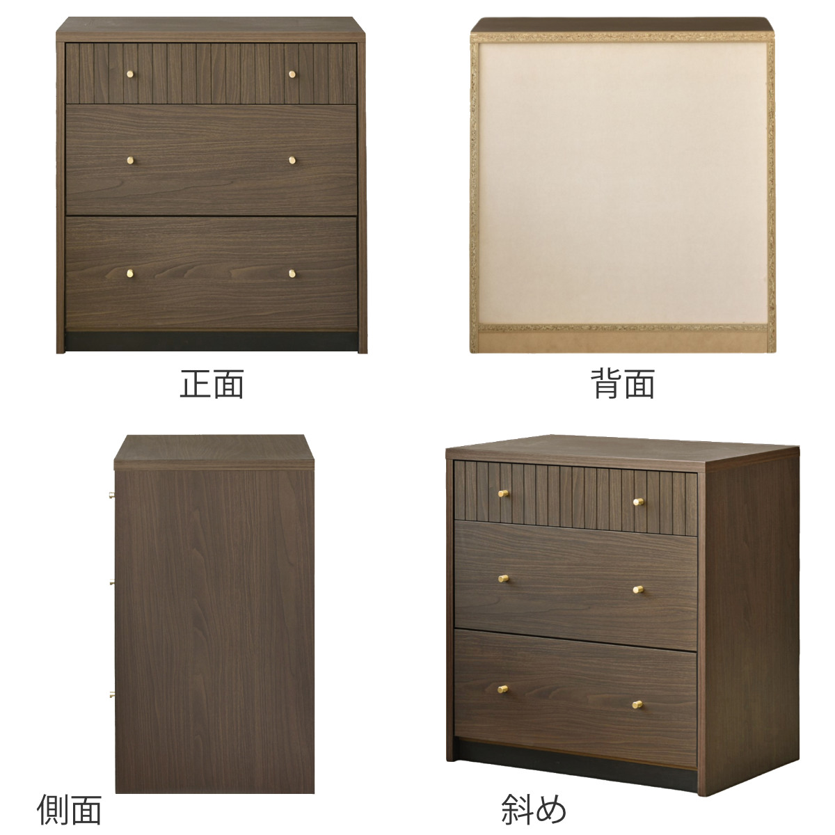 落ち着いた木目調の3段チェスト