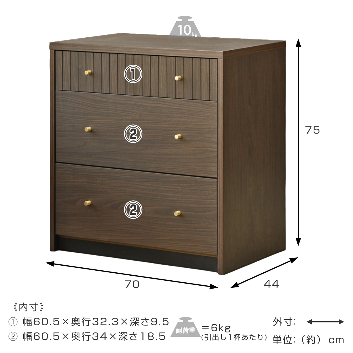| 引き出し1段あたり耐荷重 | 6kg |