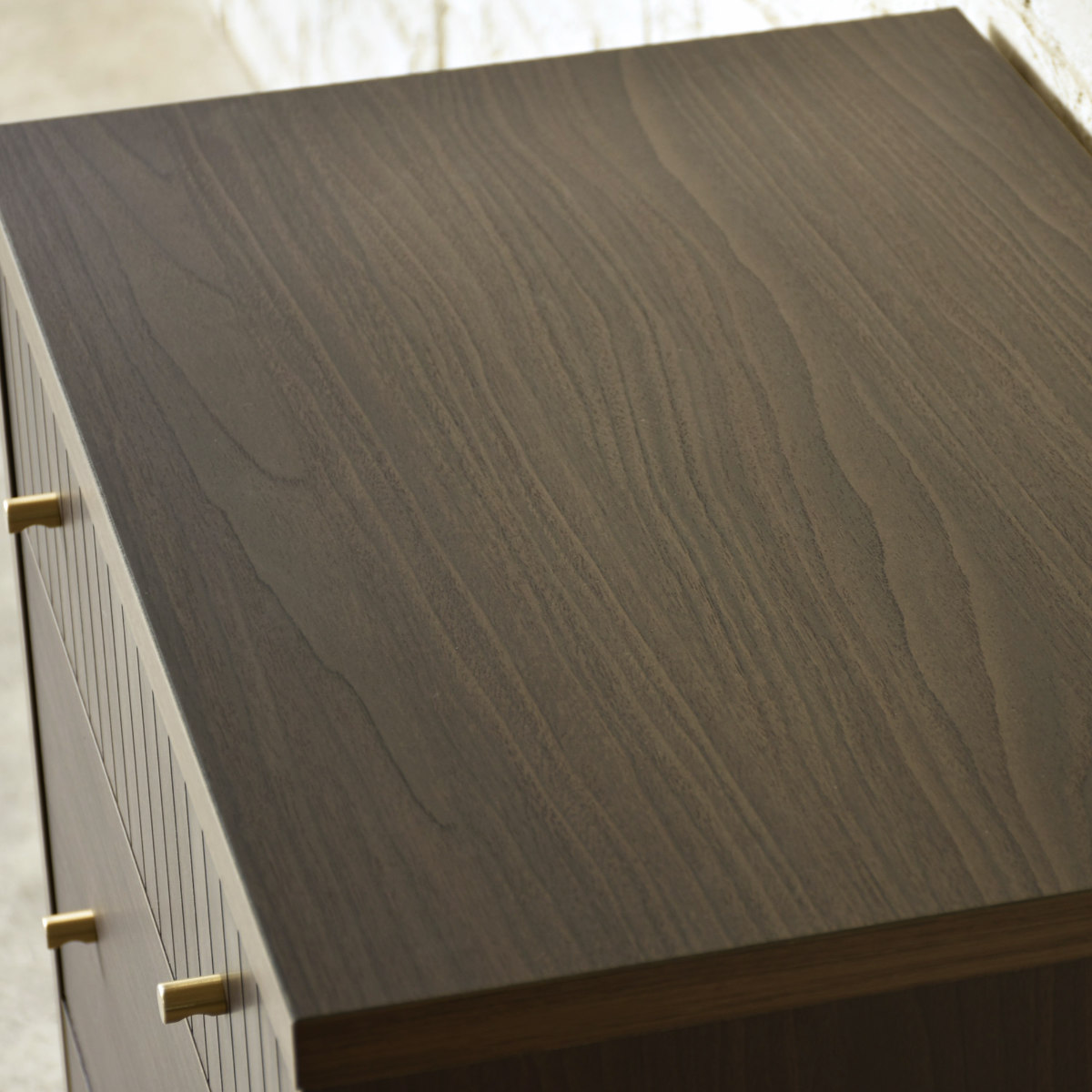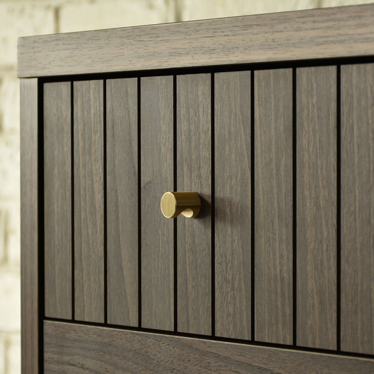 扉のつまみには真鍮素材を使用しています。落ち着いた木目に映える、上品なアクセントになっています。
