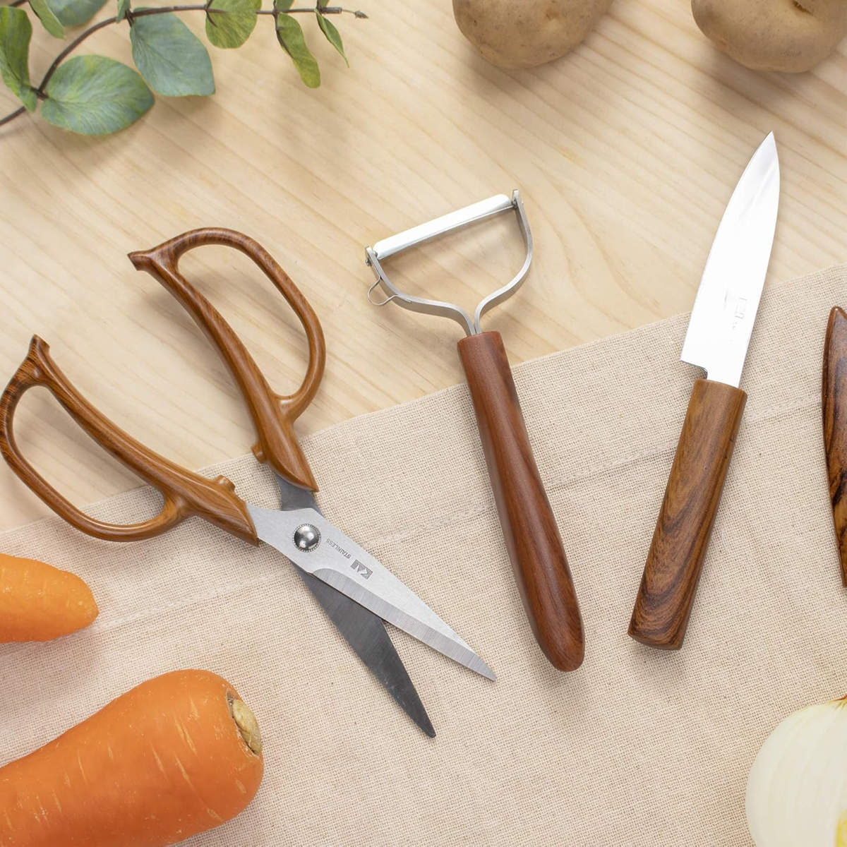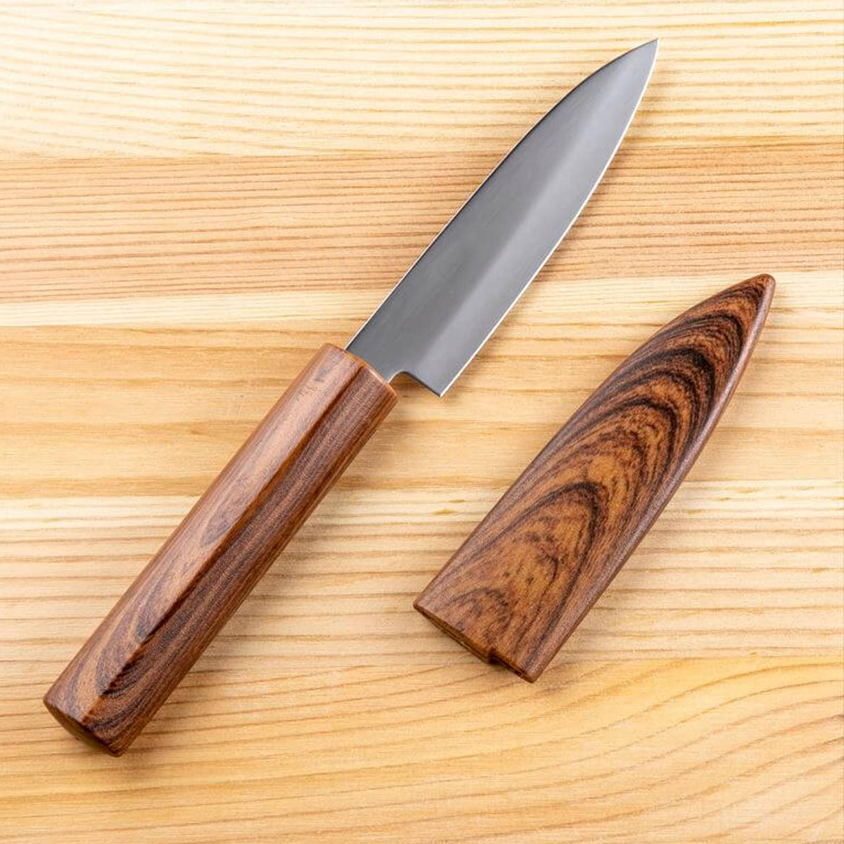 木目調でキッチンになじむ、サヤ付きフルーツナイフ