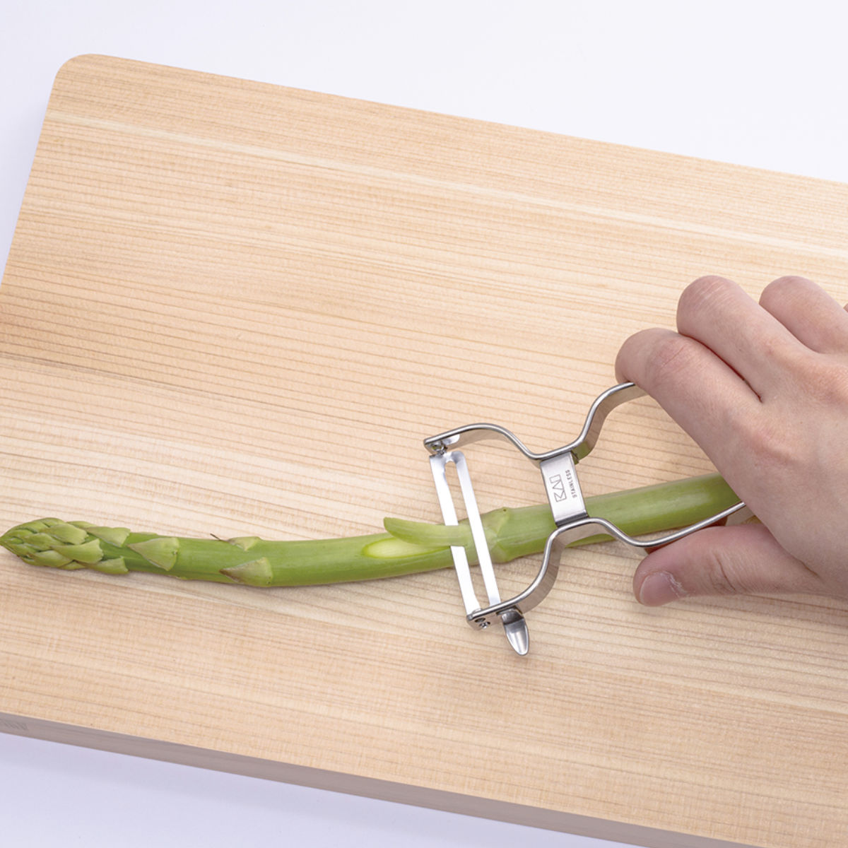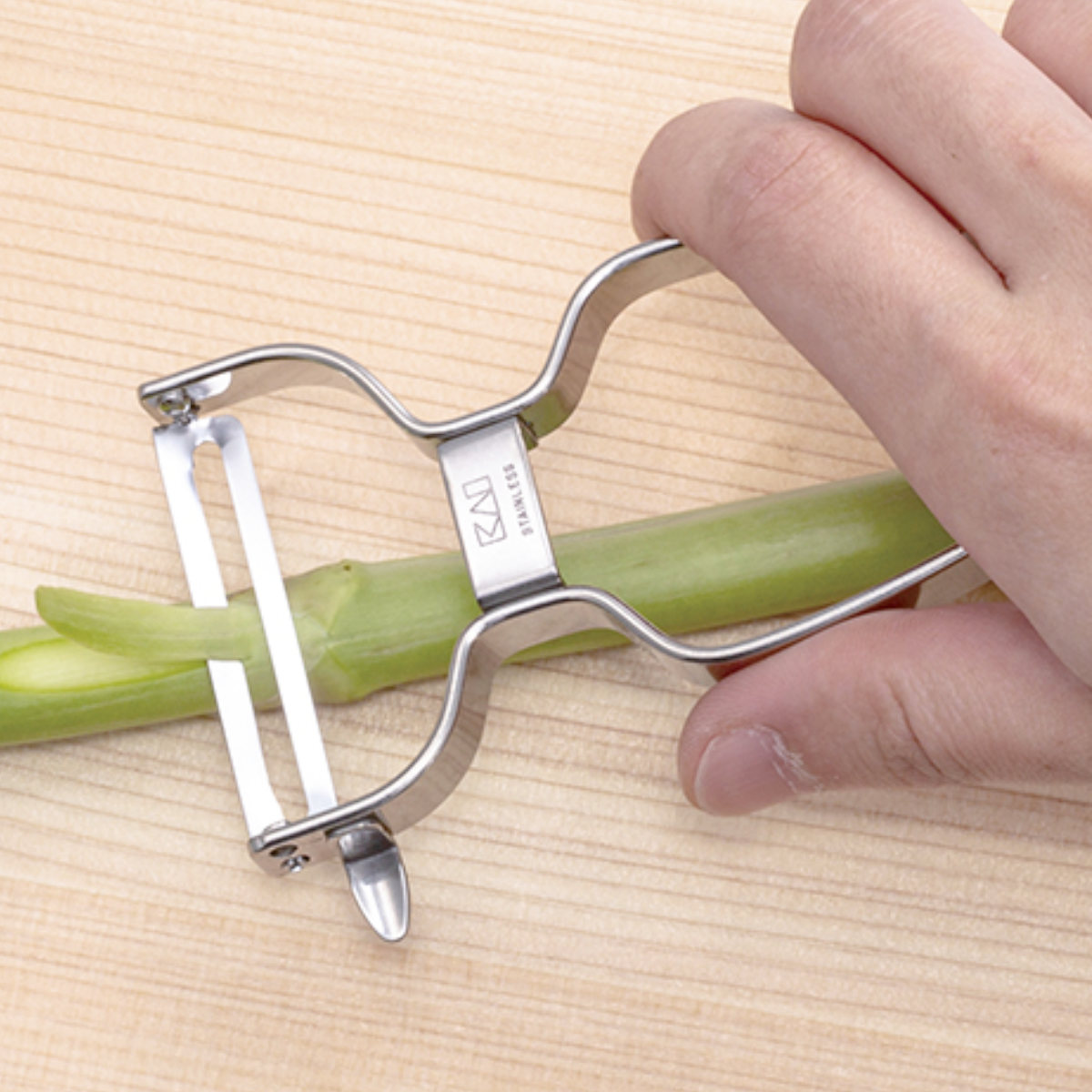 ●皮むき時に食材が見えやすく、持ちやすいハンドル形状で安定して使用できます。