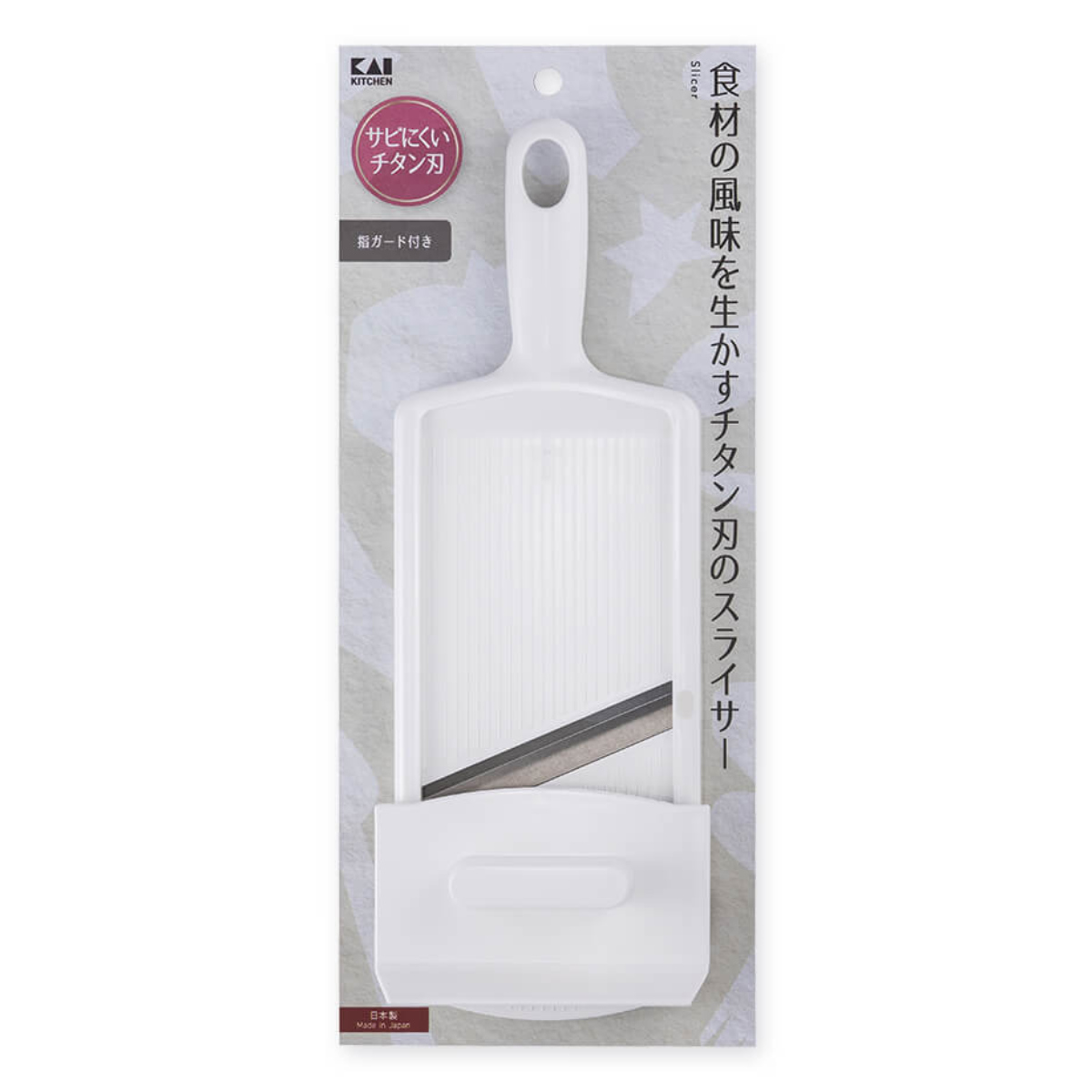 食材の風味を生かす、サビにくいチタン刃のスライサーです。金属特有のにおい移りが少なく、食材本来の風味を損ないにくいのが特長です。