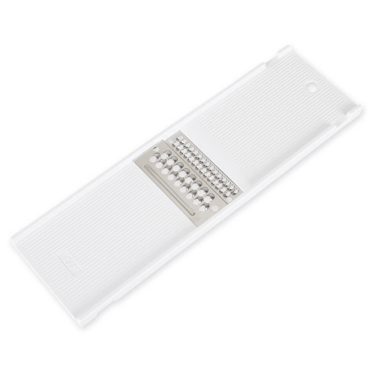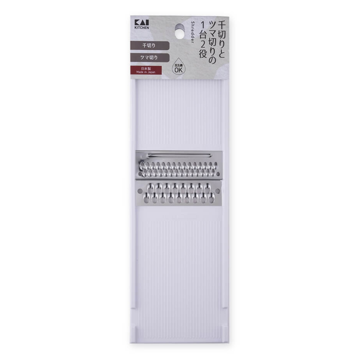 包丁では手間のかかる千切りとツマ切りが、手早くできる千切り器です。千切りは約4mm幅、ツマ切りは約2mm幅でカットできます。