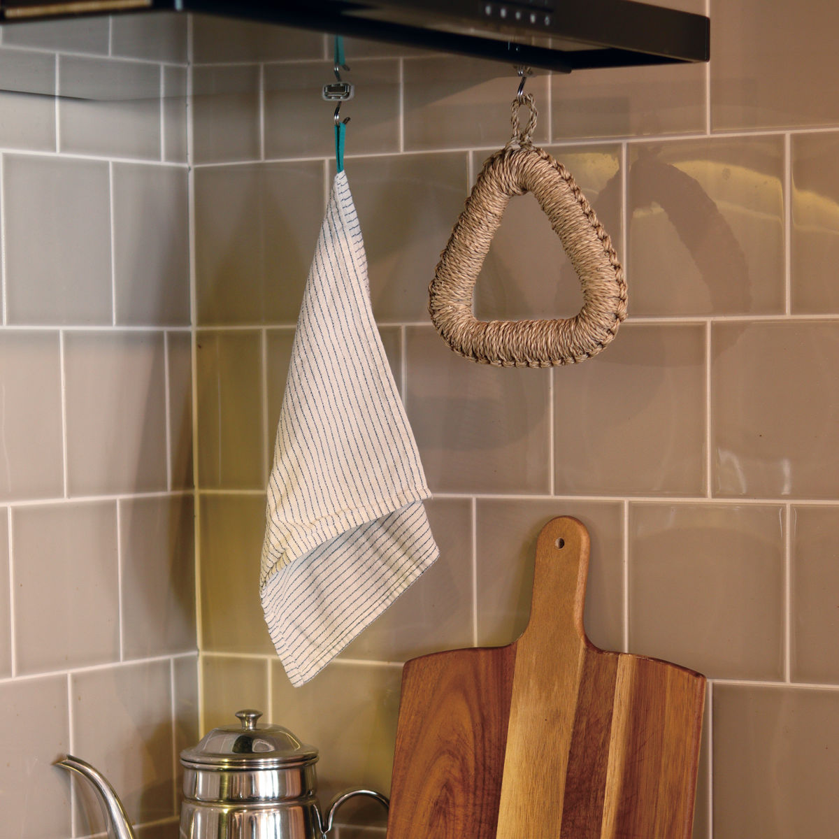 ●使わない時はループを使ってフックに掛けて収納でき、見せる収納としても楽しめます。