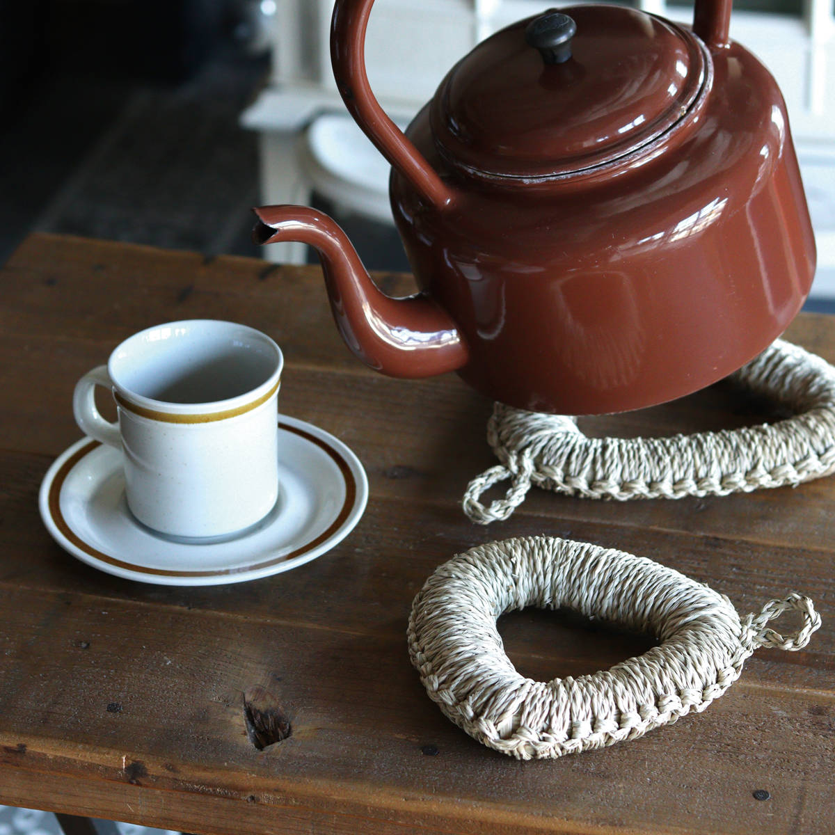 天然素材のシーグラスを使用し、職人が一つ一つ手編みで仕上げた鍋敷きです。しっかりとした編み目が、見た目にも美しい仕上がりです。