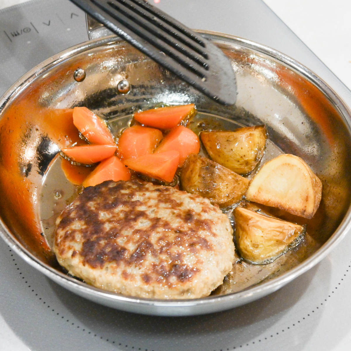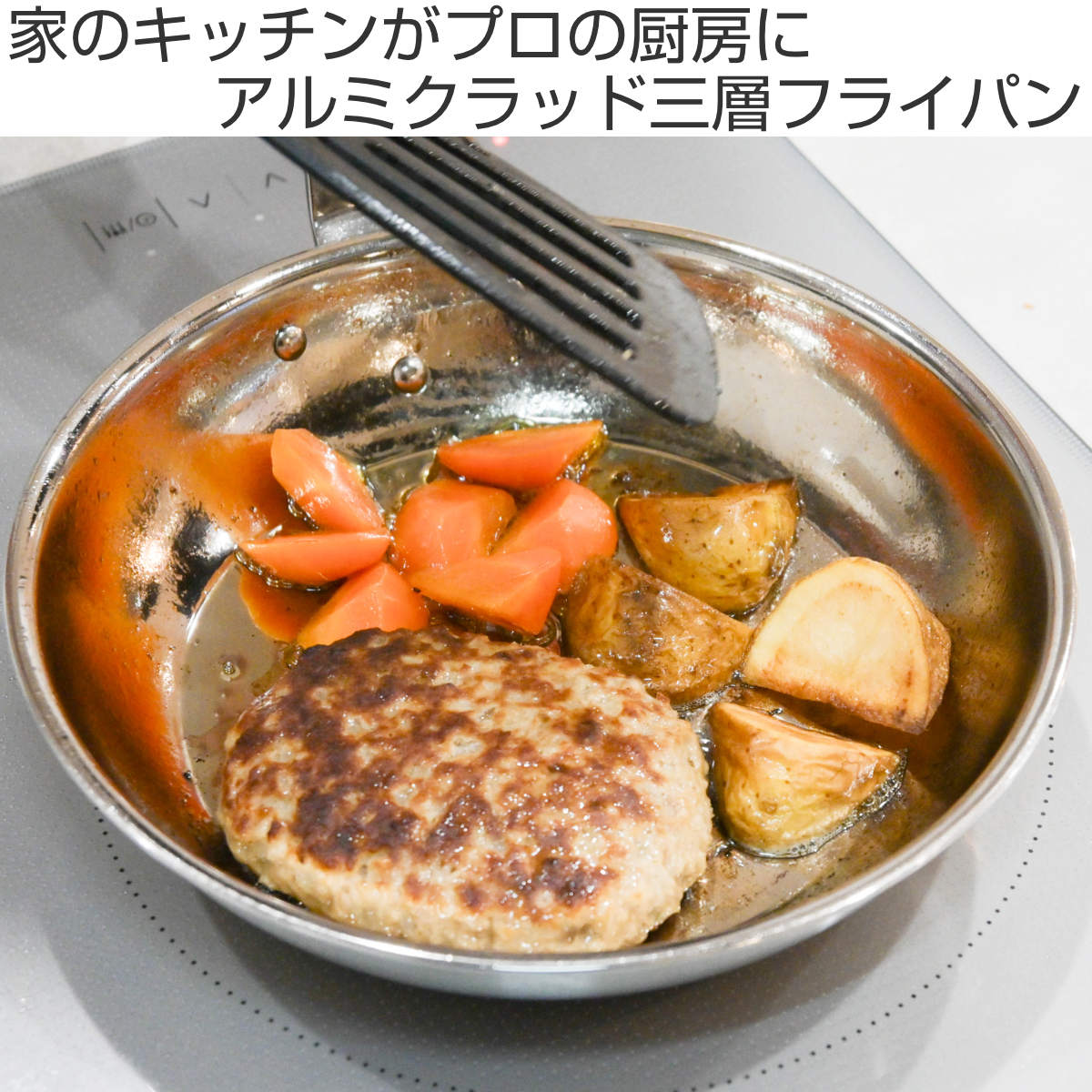 「アルミクラッド3層鋼」により、火の通りが均一でムラなくキレイに焼き上げられます。保温性に優れたステンレス材で、熱伝導率の良いアルミを挟んだ特殊な3層構造です。