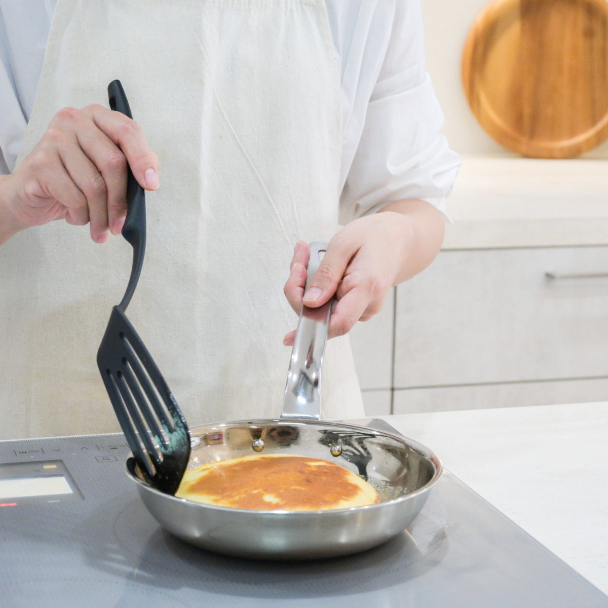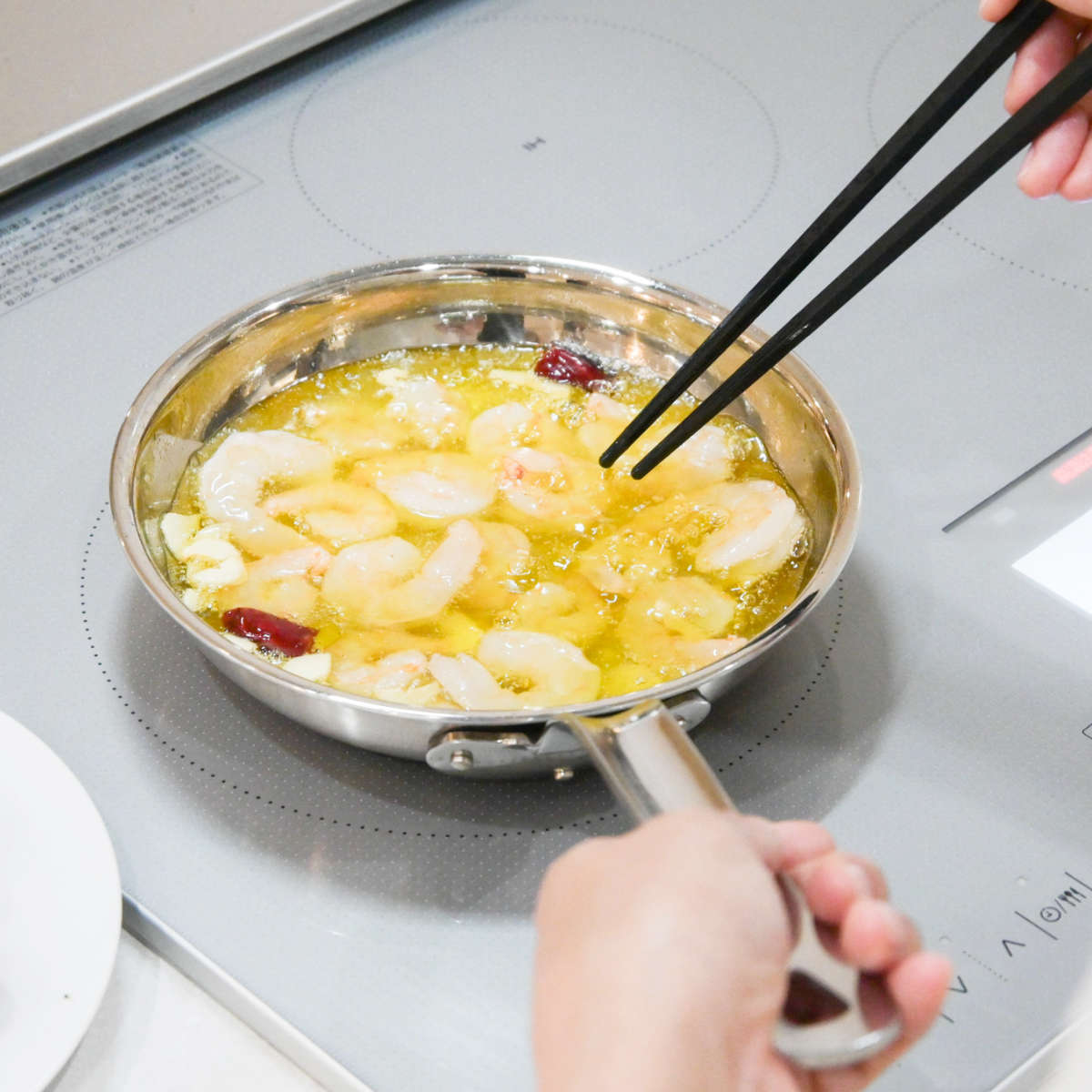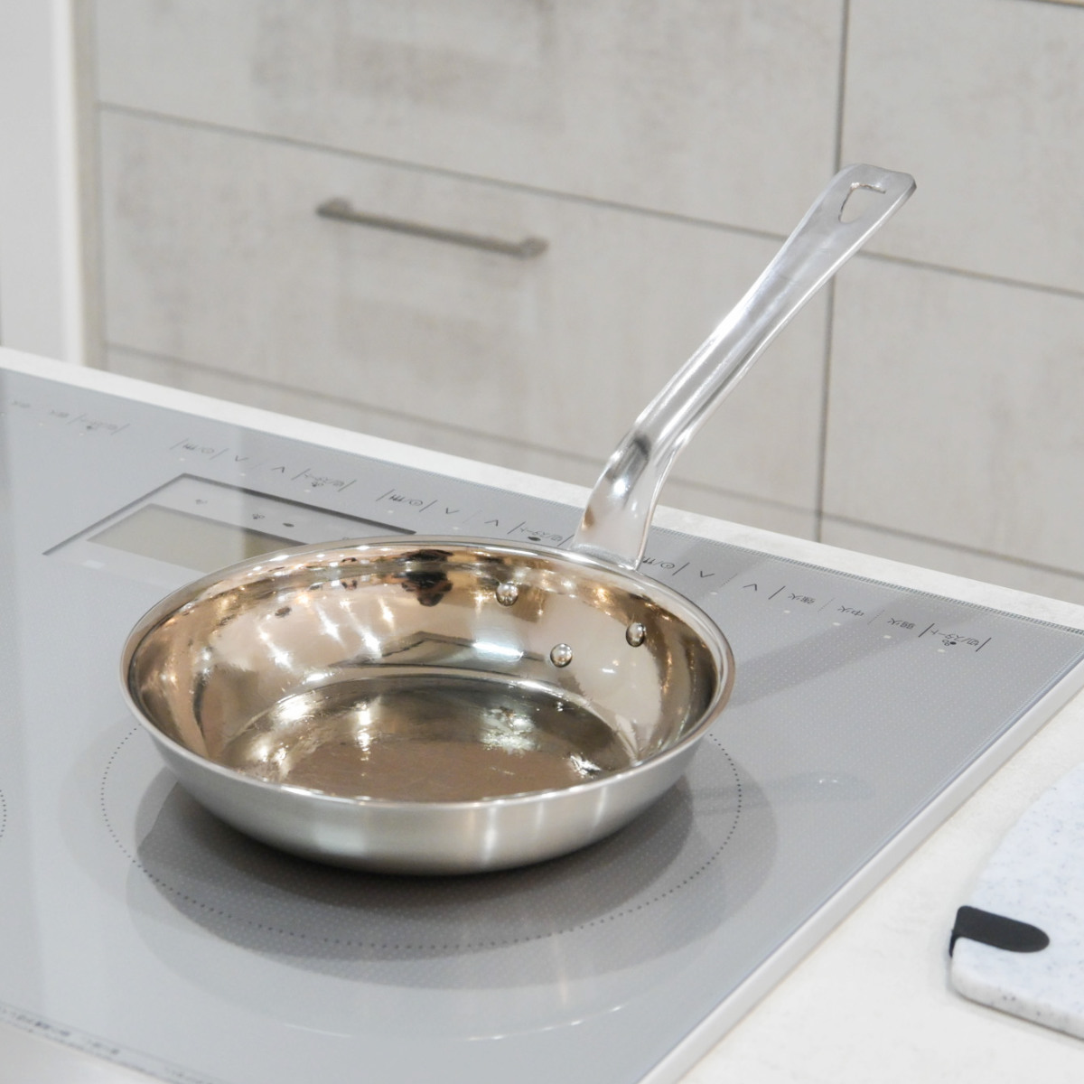内面の仕上げをツルツルの鏡面(ミラー)仕上げにすることで、食材がこびりつきにくく、汚れも落としやすいです。鉄鍋のようなシーズニング(油慣らし)は不要です。万一焦げついてもタワシなどでゴシゴシ洗えるためお手入れが簡単です。
