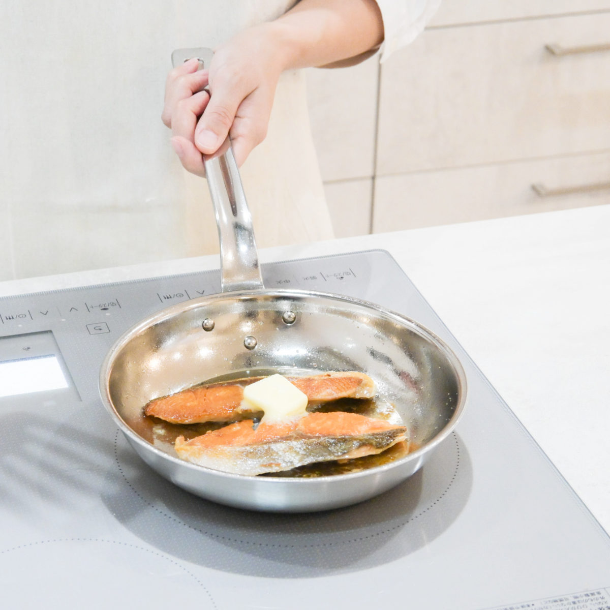 (3)外側は有磁性に優れた『SUS430』を使用し、IHにも対応しています。