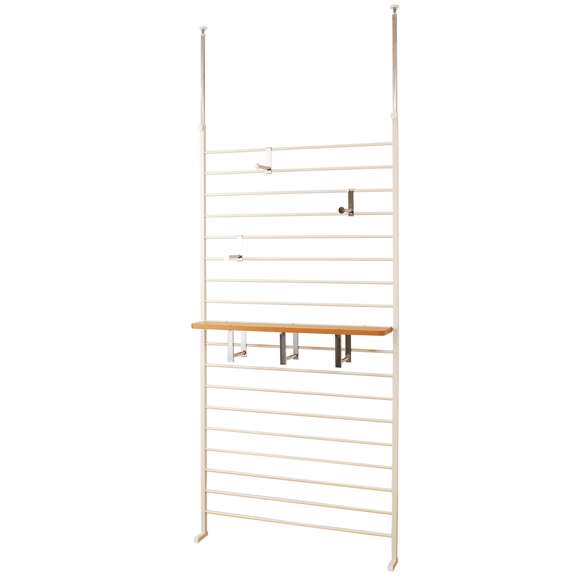 飾る&掛ける機能を兼ね備えた、ハンガーパイプ付きの棚板が1枚付属しています。ラダー部分のお好きな場所に取り付けることができ、いつでも移動させることができます。