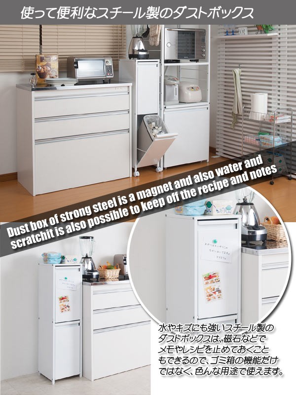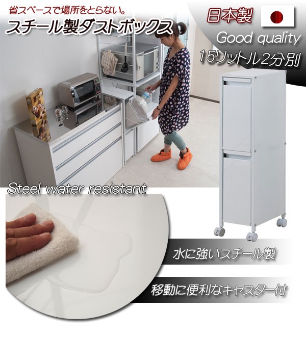 ●水やキズに強いスチール製のキッチン用ゴミ箱です。