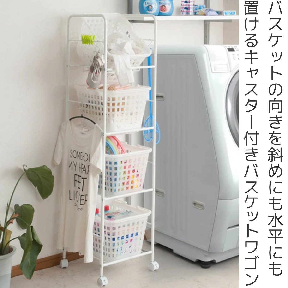 バスケットの向きを、頻繁に取り出す洗濯物などは斜めに、洗濯済みのタオルや洗濯グッズなどの小物収納には真っ直ぐにと、使い勝手が良いように変えられます。
