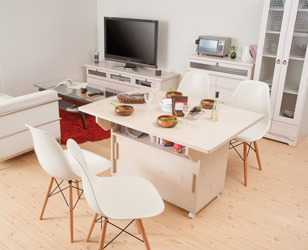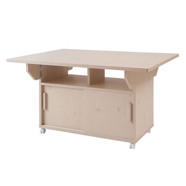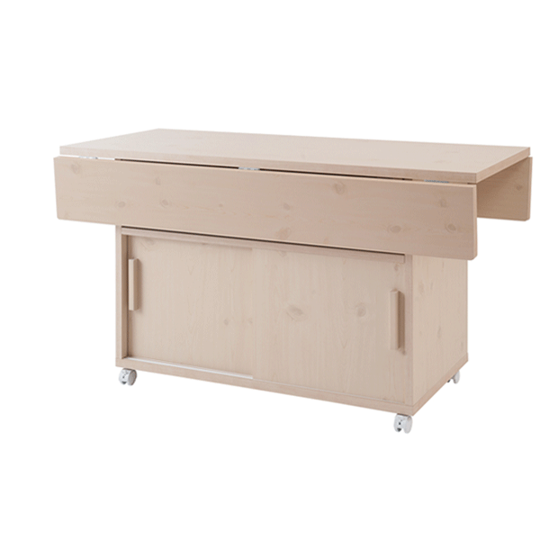 ●普段は折りたたんでコンパクトに、広いスペースが必要な時はテーブルを広げて使えてワイドに使えるテーブルです。