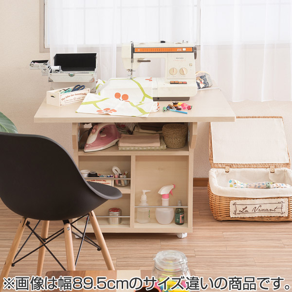 カウンターテーブルとしてはもちろん、ミシンやパソコン等を使う作業台としてお使い頂けます。お色は木目がうっすらと見える上品なホワイトウォッシュ色になります。