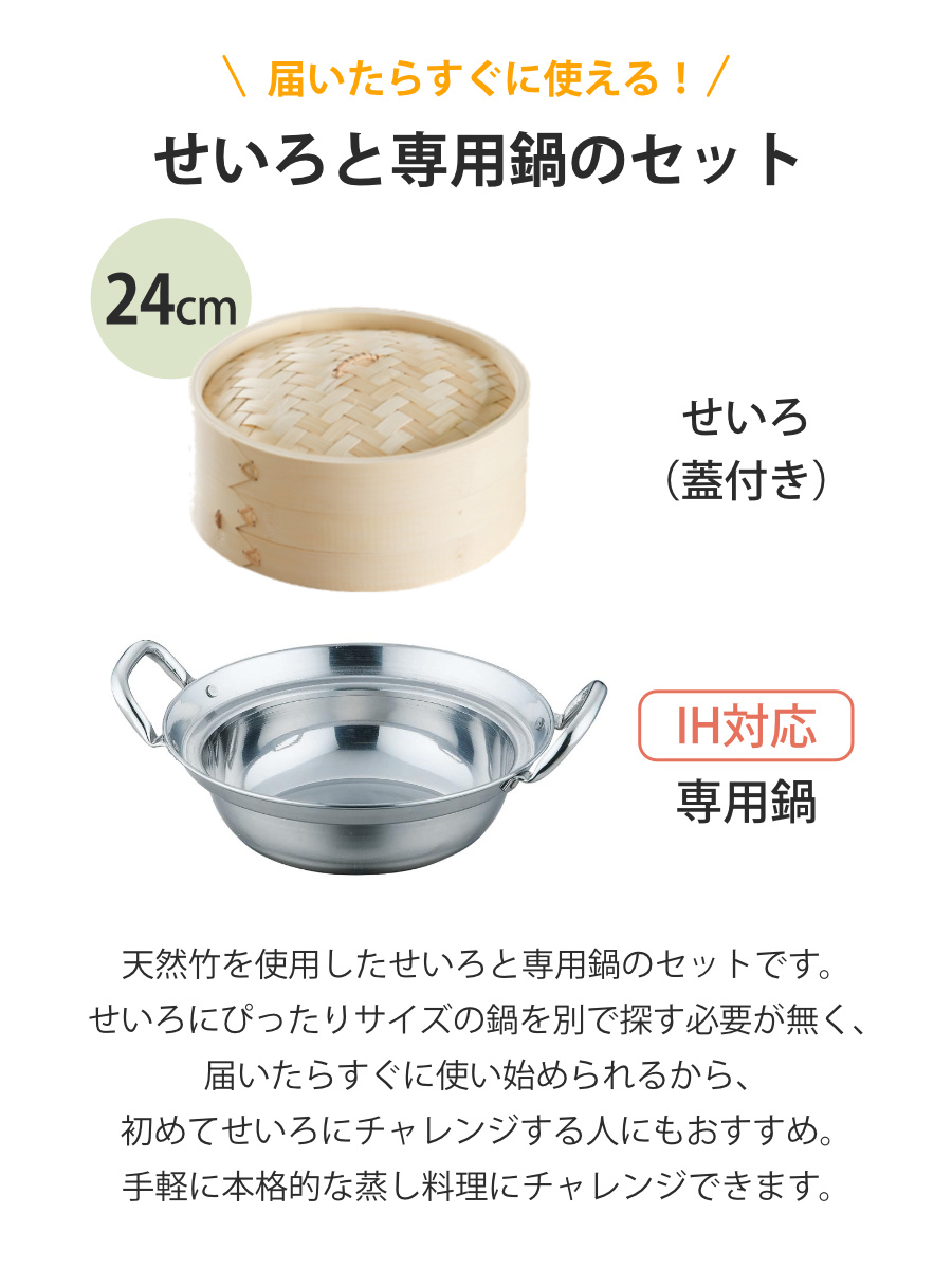 ![]() せいろ+鍋セット 27cm | ![]() せいろ+鍋セット 24cm 【▲このページの商品】 | ![]() せいろ+鍋セット 21cm |