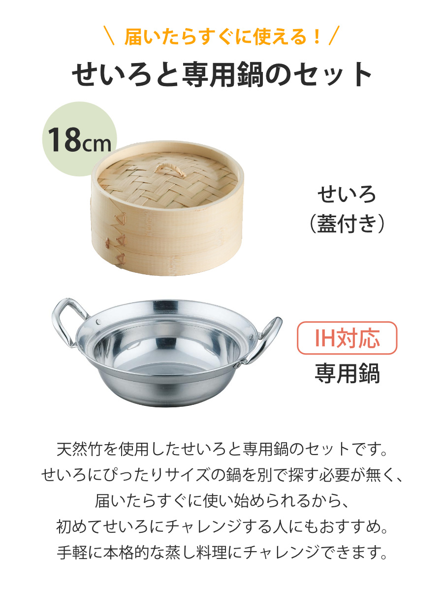 ![]() せいろ+鍋セット 18cm 【▲このページの商品】 | ![]() せいろ+鍋セット 15cm |