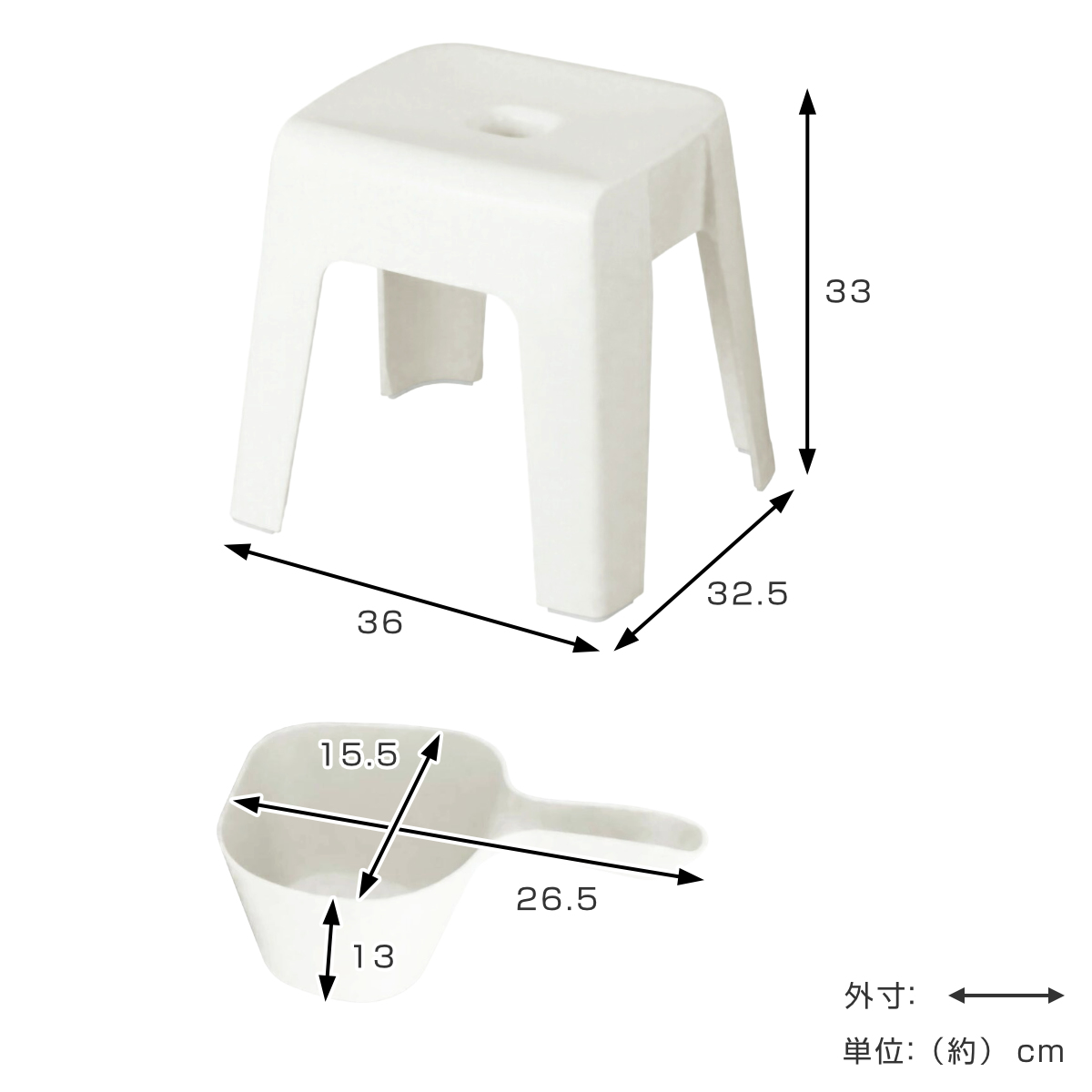 | サイズ | 【風呂椅子】 約 幅36×奥行32.5×高さ33(cm) 【手桶】 約 幅26.5×奥行15.5×高さ13(cm) |