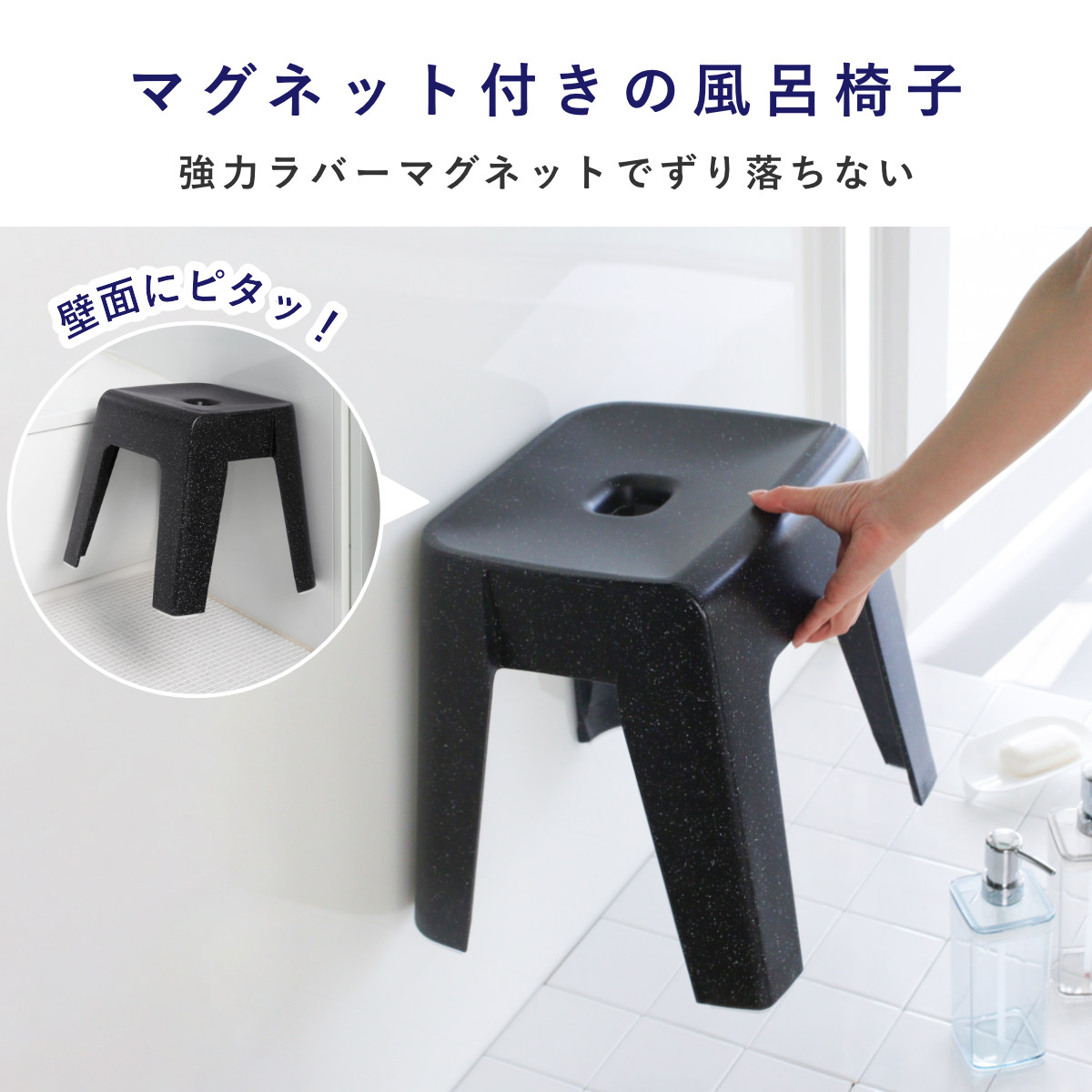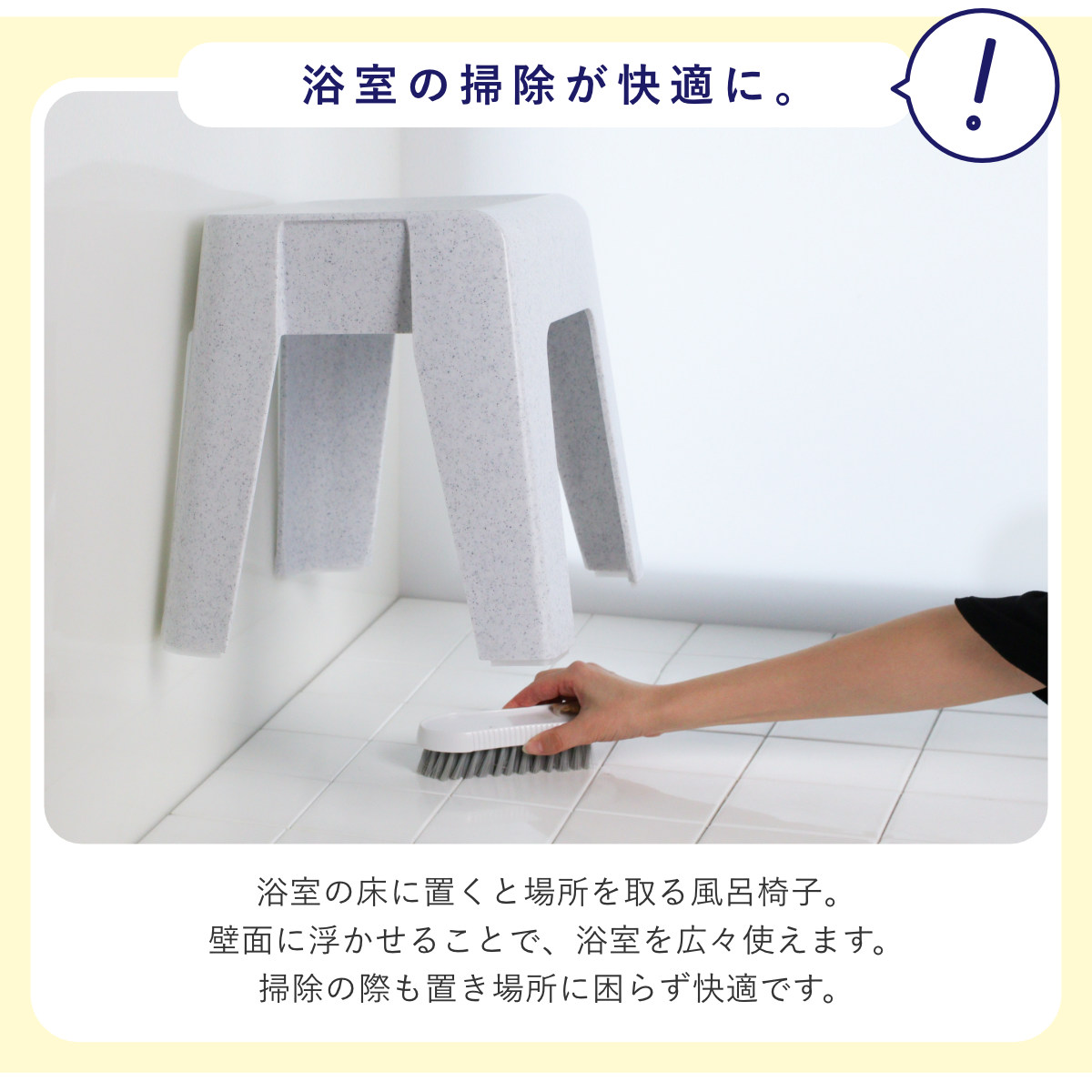 壁面にマグネットで簡単に取り付けできる風呂椅子です。浮かせることで床も風呂椅子も早く乾くため、浴室を清潔に保つことができます。