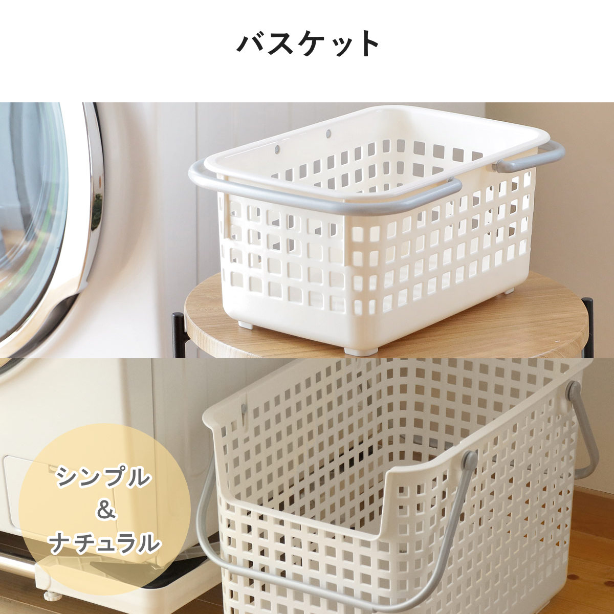シンプルでナチュラルなデザインのバスケットです。軽くて扱いやすいプラスチック製で、格子状のデザインが風通しの良さを保ちます。