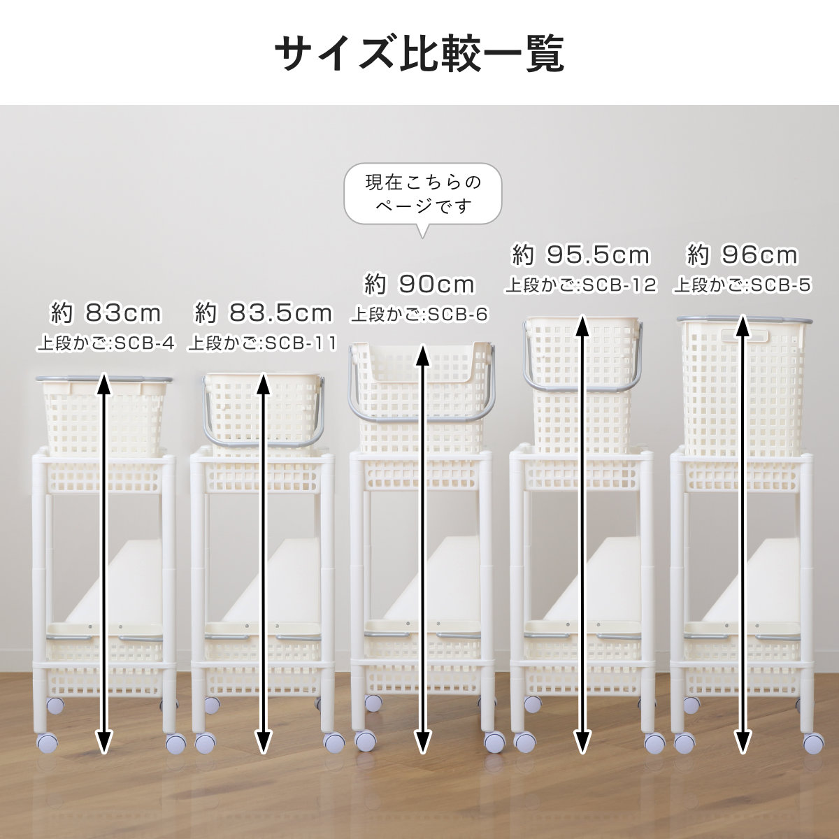 上段のバスケットの種類によって全体の高さが異なります。お使いのスペースや用途に合わせて、ちょうどいいサイズをお選びいただけます。