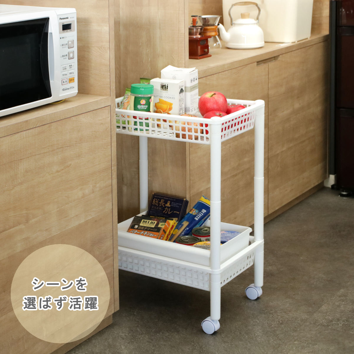 キッチンやリビングなど、さまざまなシーンで活躍します。上段と下段の間に十分な高さがあるため、収納物の出し入れもスムーズです。