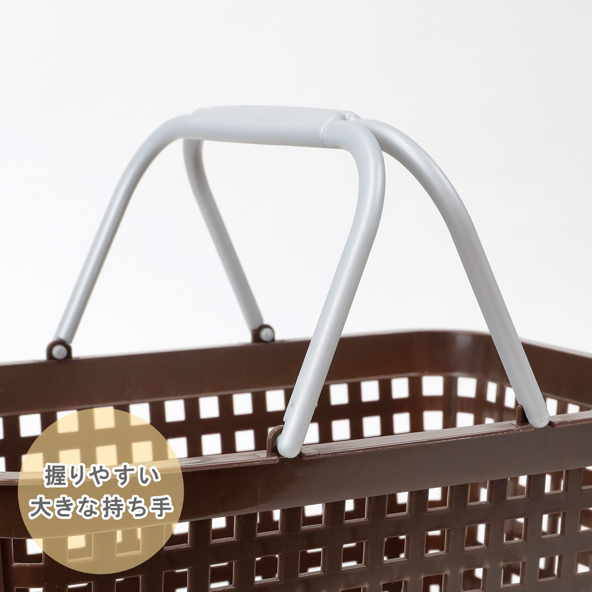 腕を通して持ちやすい持ち手付きです。複数のバスケットをまとめて運ぶ際も握りやすく、持ち運びがラクに行えます。