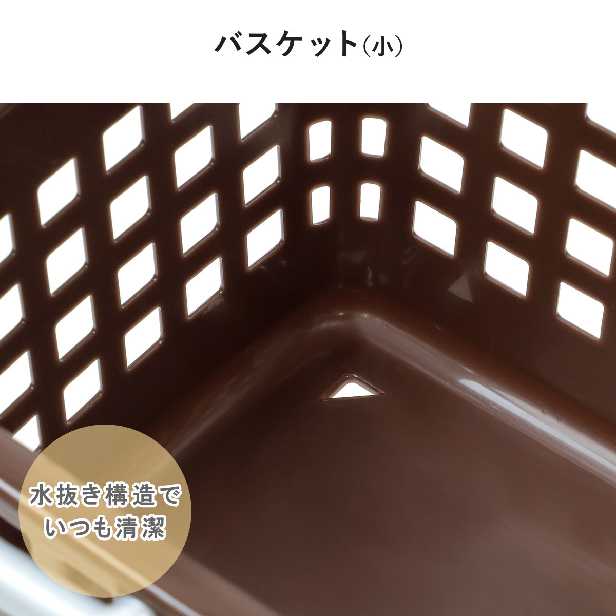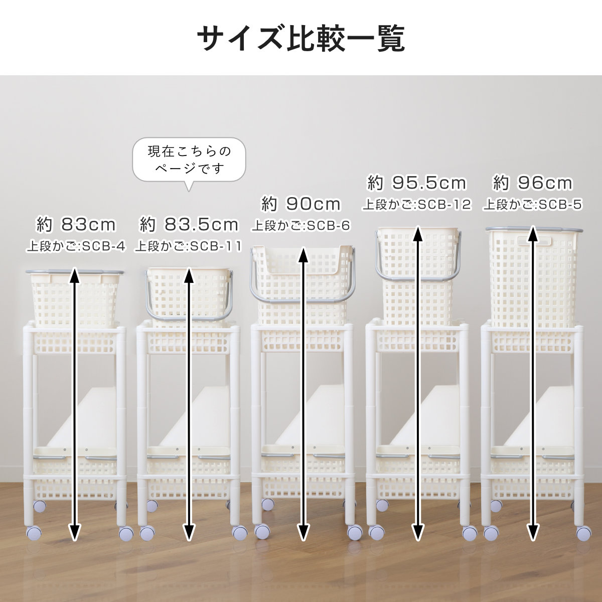 上段のバスケットの種類によって全体の高さが異なります。お使いのスペースや用途に合わせて、ちょうどいいサイズをお選びいただけます。