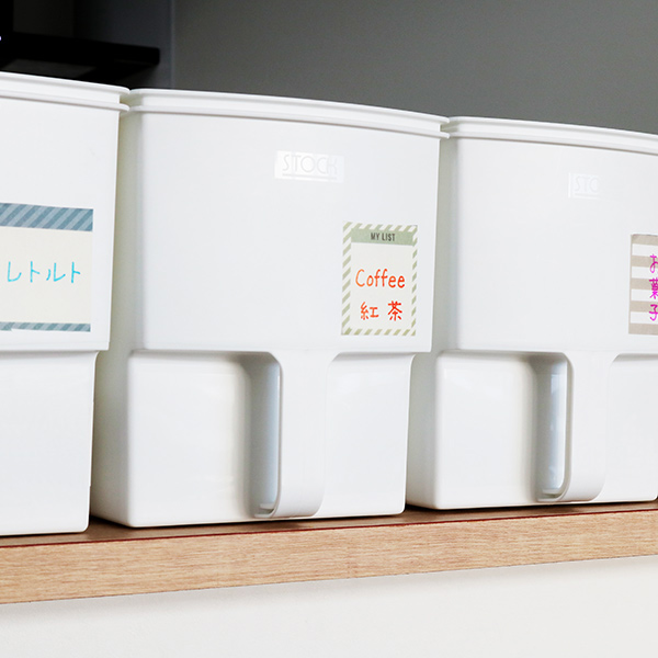 マスキングテープやタイトルシールを貼って、整理して収納したものを見える化することで家族みんなが探しやすくなり、探す手間も省けます。