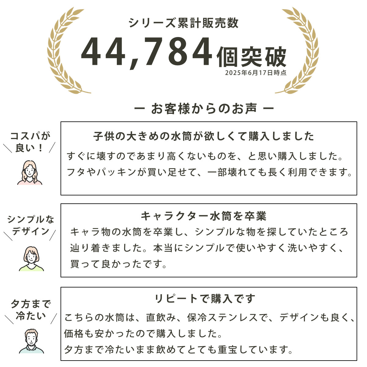 | 内容量 | 【セット内容】 水筒×1 キャップユニット×1 蓋パッキン×2 リングパッキン×2 |