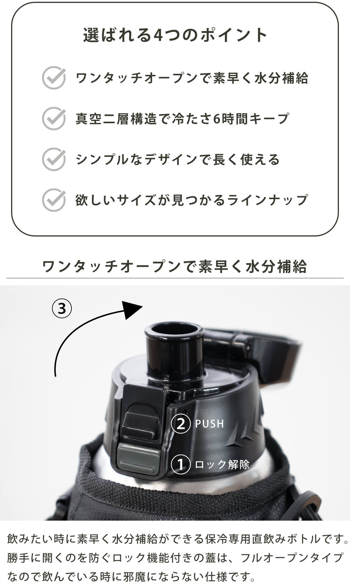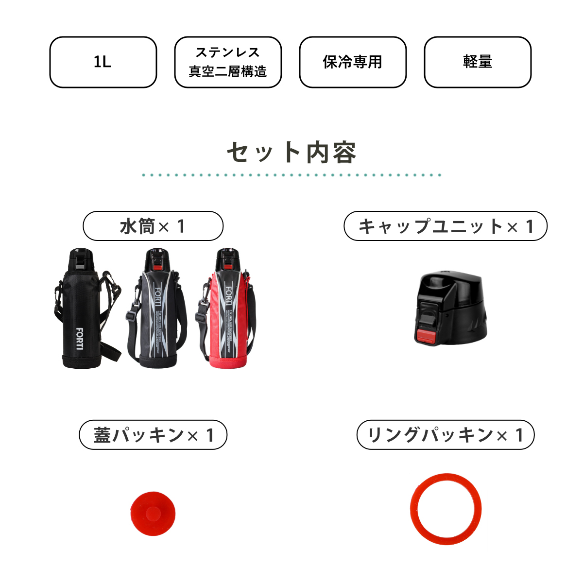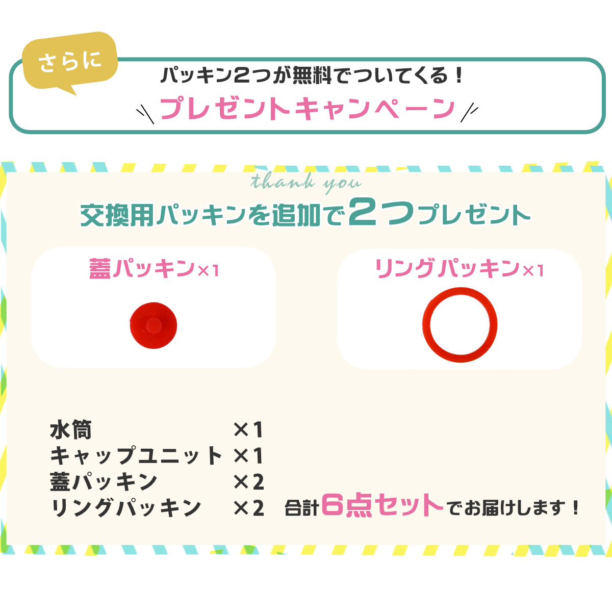 ![]() 1L 水筒単品 | ![]() キャップユニット | ![]() リングパッキン |