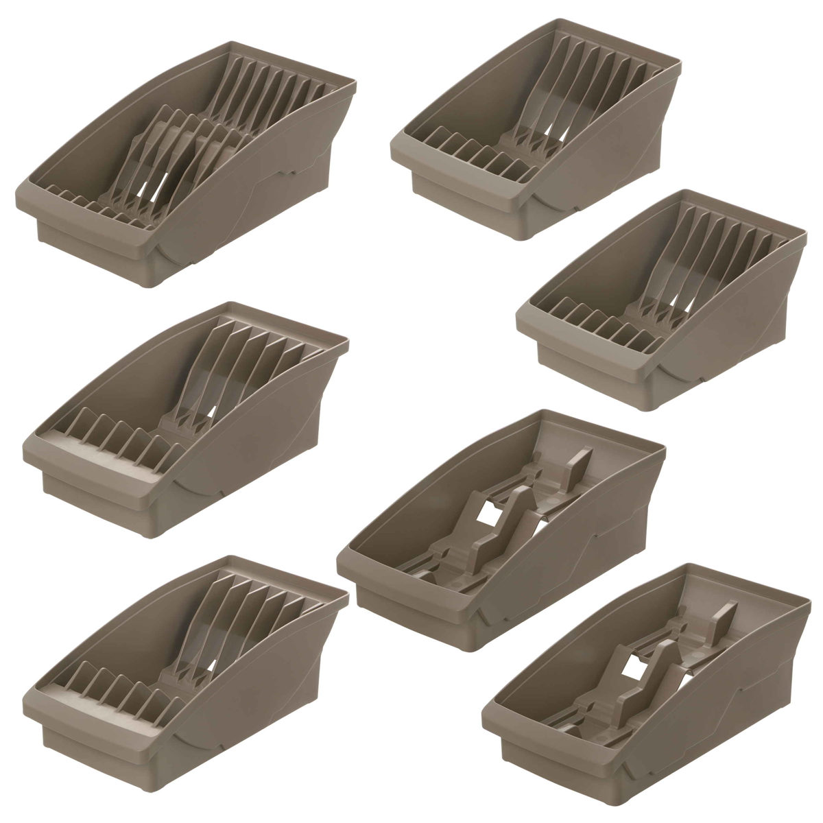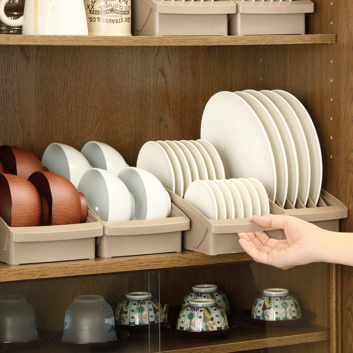 お皿をサイズ別に区切って整える、ディッシュスタンド&お椀スタンドのセットです。定位置を作ることで食器を美しく収納できます。どこに何があるか棚を開けたときに分かりやすく、出した食器をどこに戻すかも一目瞭然です。
