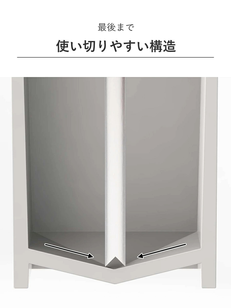 液体が中央に集まり、最後まで使い切りやすい構造になっています。