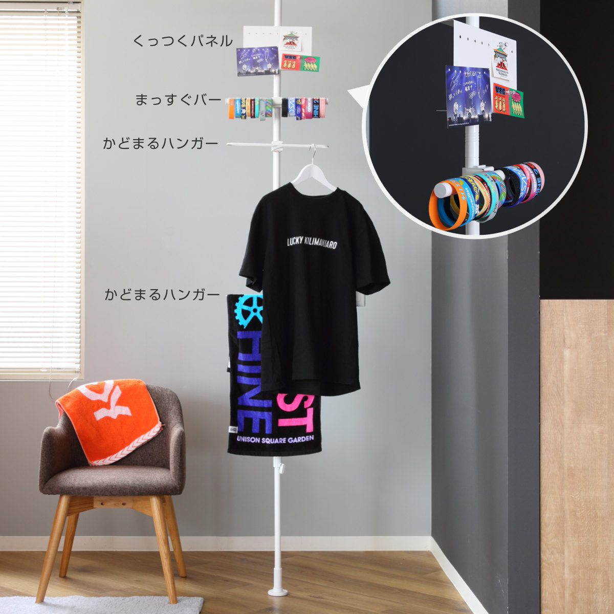 アクセサリーを追加すれば収納スペースを増やせるので、どんどん増えていく推しグッズの収納にもぴったりです。「くっつくパネル」にポストカードやライブのチケットを、「まっすぐバー」にはラバーバンドを掛けて、お気に入りのグッズをディスプレイ。