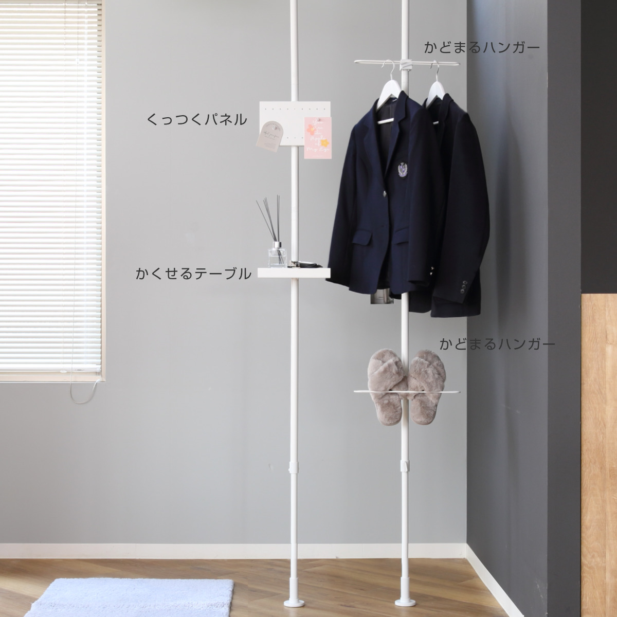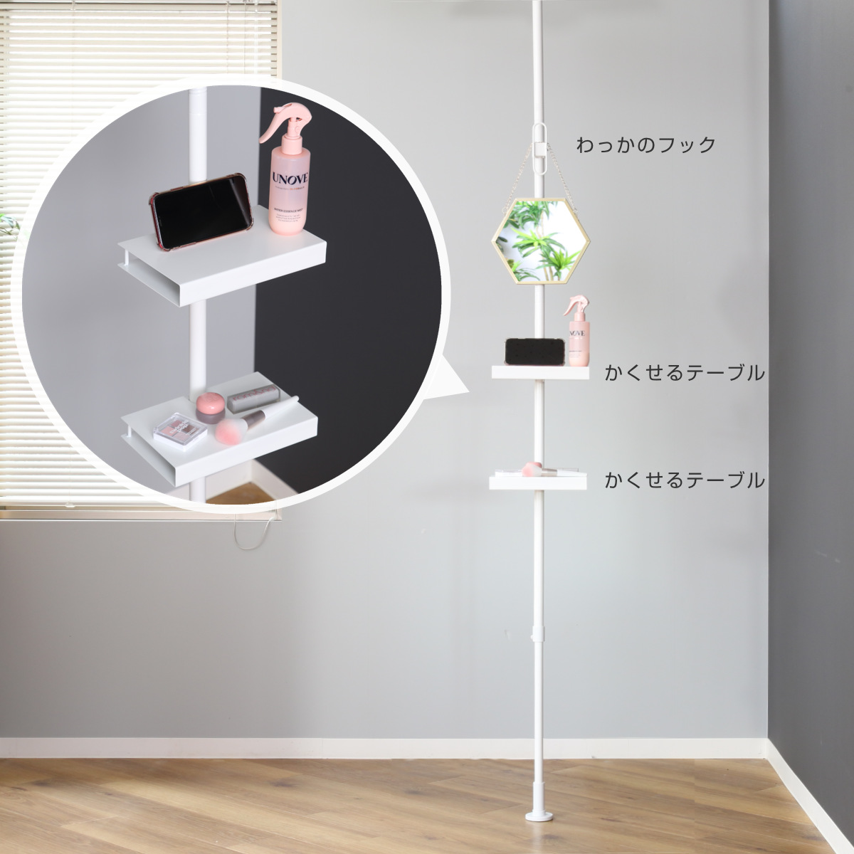 ポールを2本使って、さらに収納力アップ。玄関でディフューザーや鍵を置いたり、スリッパやコート掛けとしても便利にお使いいただけます。