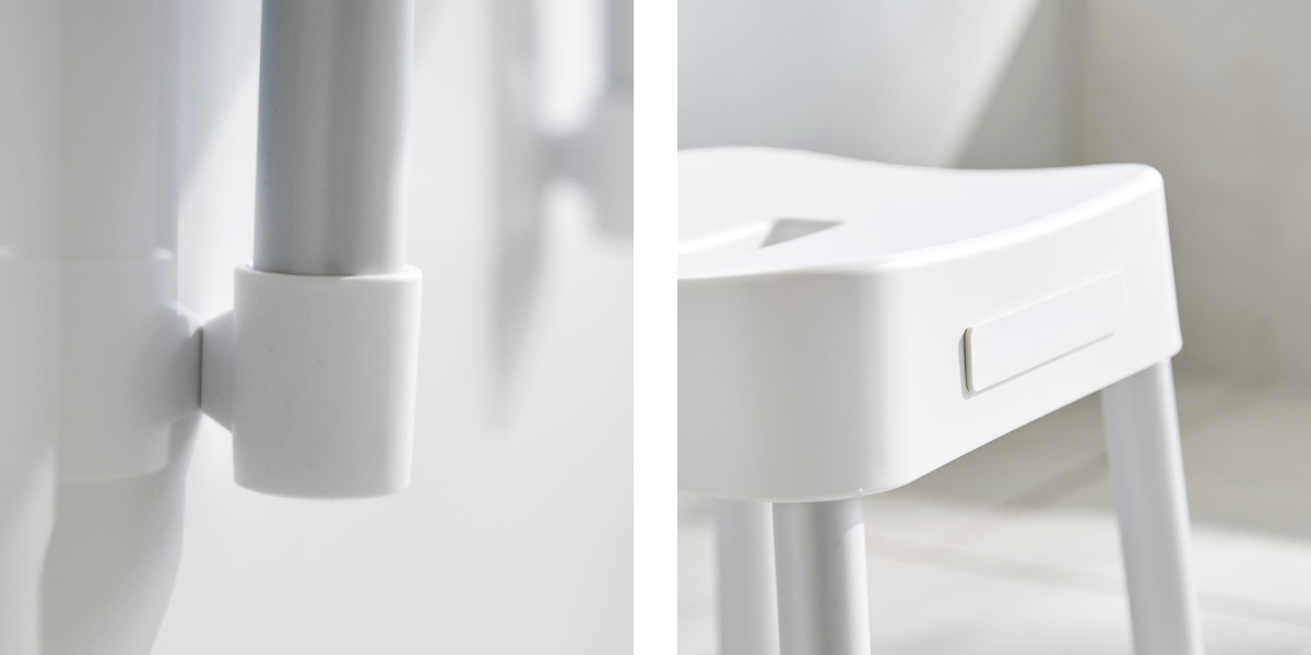 シンプルでスタイリッシュなデザインの風呂イスです。座面の高さがスタンダードな25cmです。アルミ製の丈夫な脚はシンプルなデザインで、通気性がよく乾きやすいです。脚の裏にはキズ防止の滑り止めが付いています。