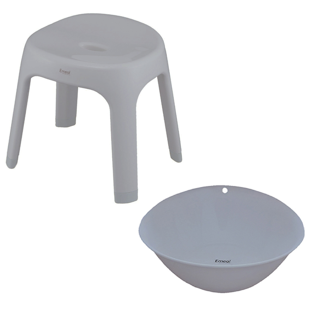 使いやすさ・洗いやすさにこだわった風呂椅子、湯桶の2点セットです。ちょっと高めな座面高30cmでラクに座れます。