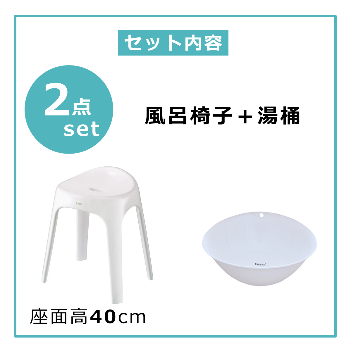 使いやすさ・洗いやすさにこだわった風呂椅子、湯桶の2点セットです。身長が高い方・体格が大きい方にピッタリな座面高40cmです。