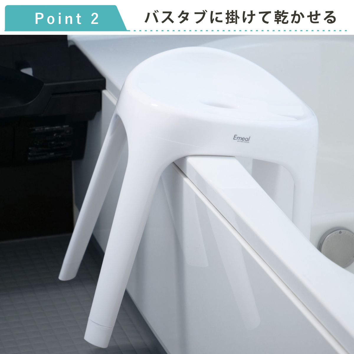 椅子の脚を浴槽の縁に掛ければ、床に置かずに乾かせるので衛生的です。脚ゴムがぬるぬるになってカビが生えたりするのを防ぎます。また、風呂掃除をする際にも便利です。