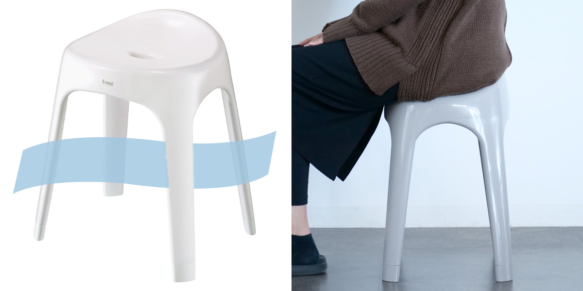 座面は、座りやすく安定感のある丸い形状になっています。体に沿うようなカーブが体に優しくフィットします。