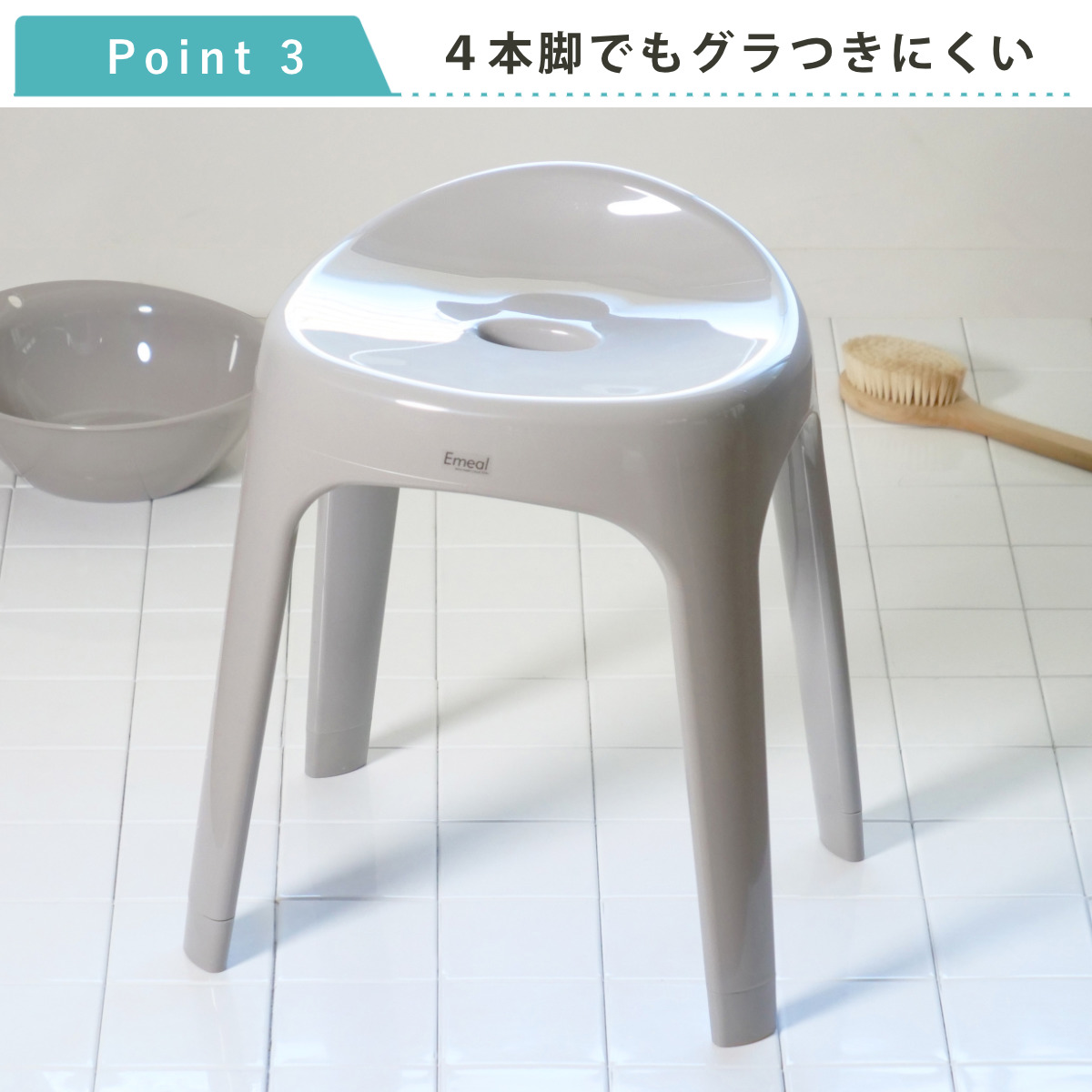 湿気の多い浴室だからこそ、通気性にこだわりました。脚の部分がフルオープンなので風通しがよく素早く乾燥、カビの発生を押さえます。