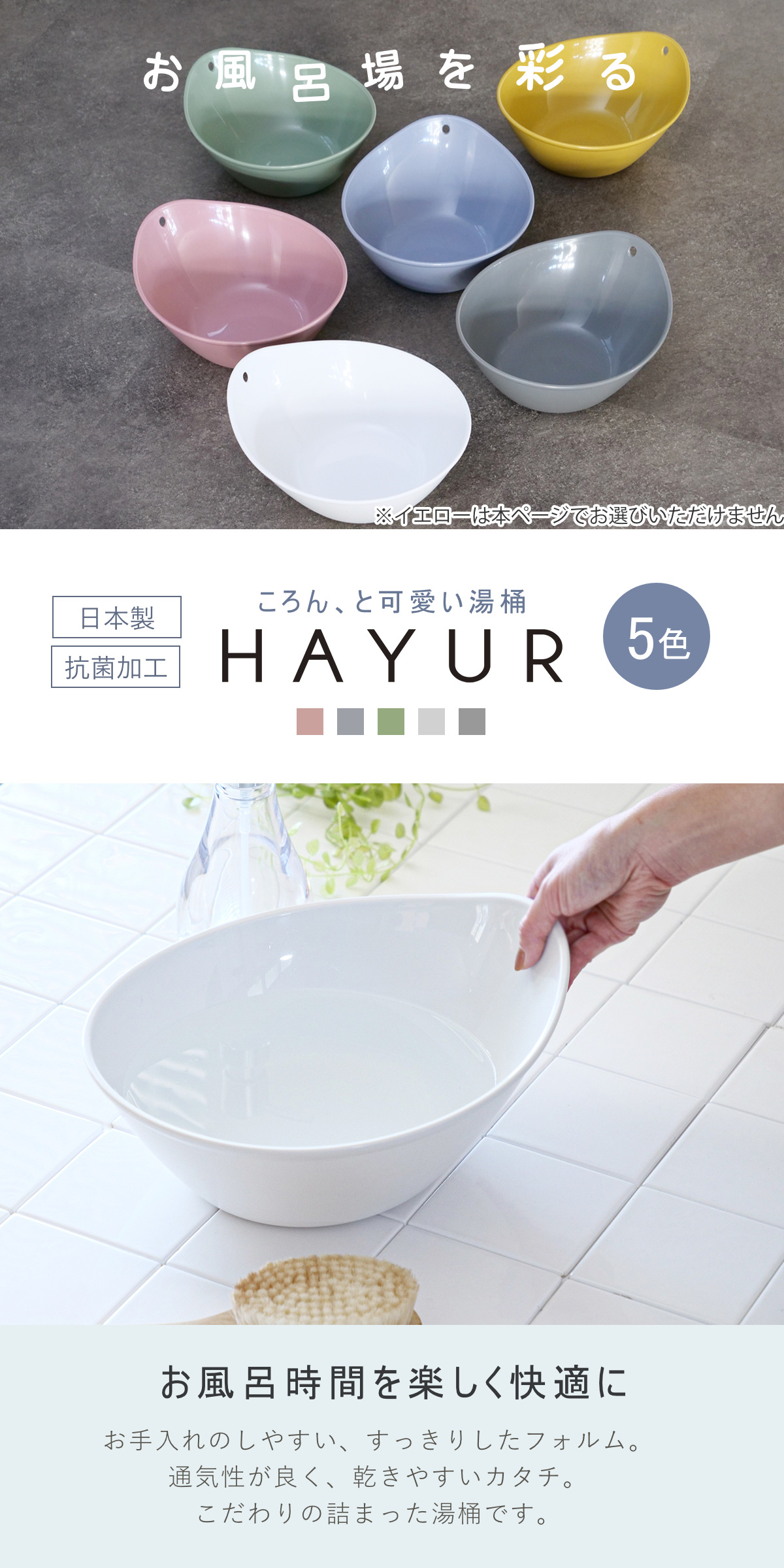 | 重量 | 【風呂椅子】 約 1.1kg 【湯桶】 約 260g 【手桶】 約 130g |