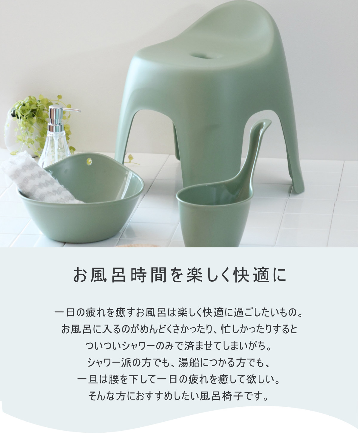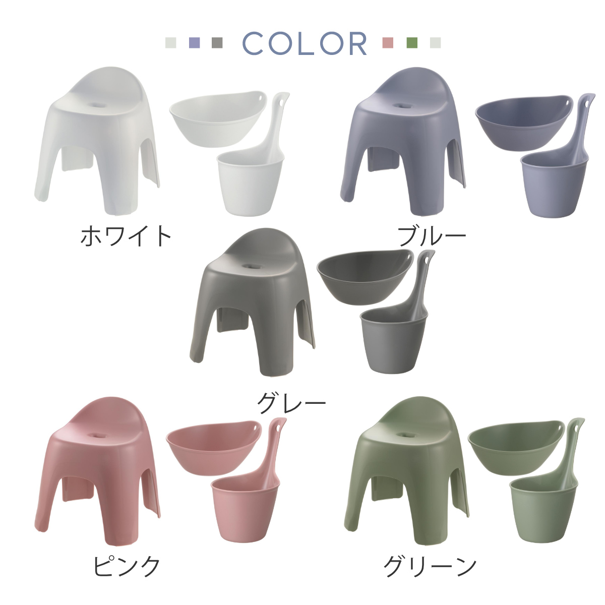 | 材質 | 【風呂椅子】 本体:ポリプロピレン ゴム脚:ポリエチレン 【湯桶】 ポリプロピレン 【手桶】 ポリプロピレン |
