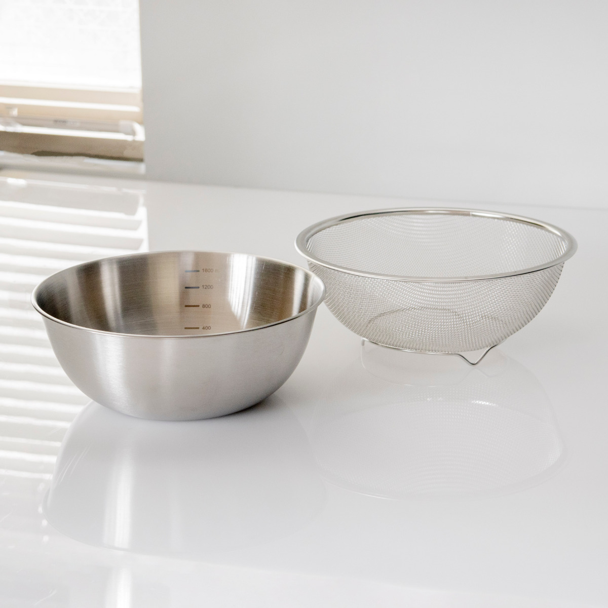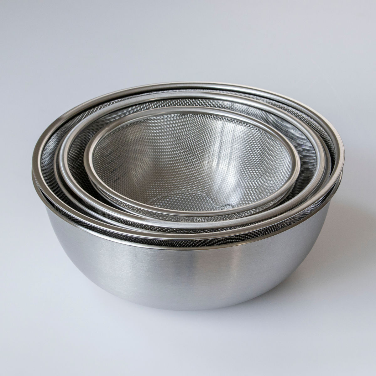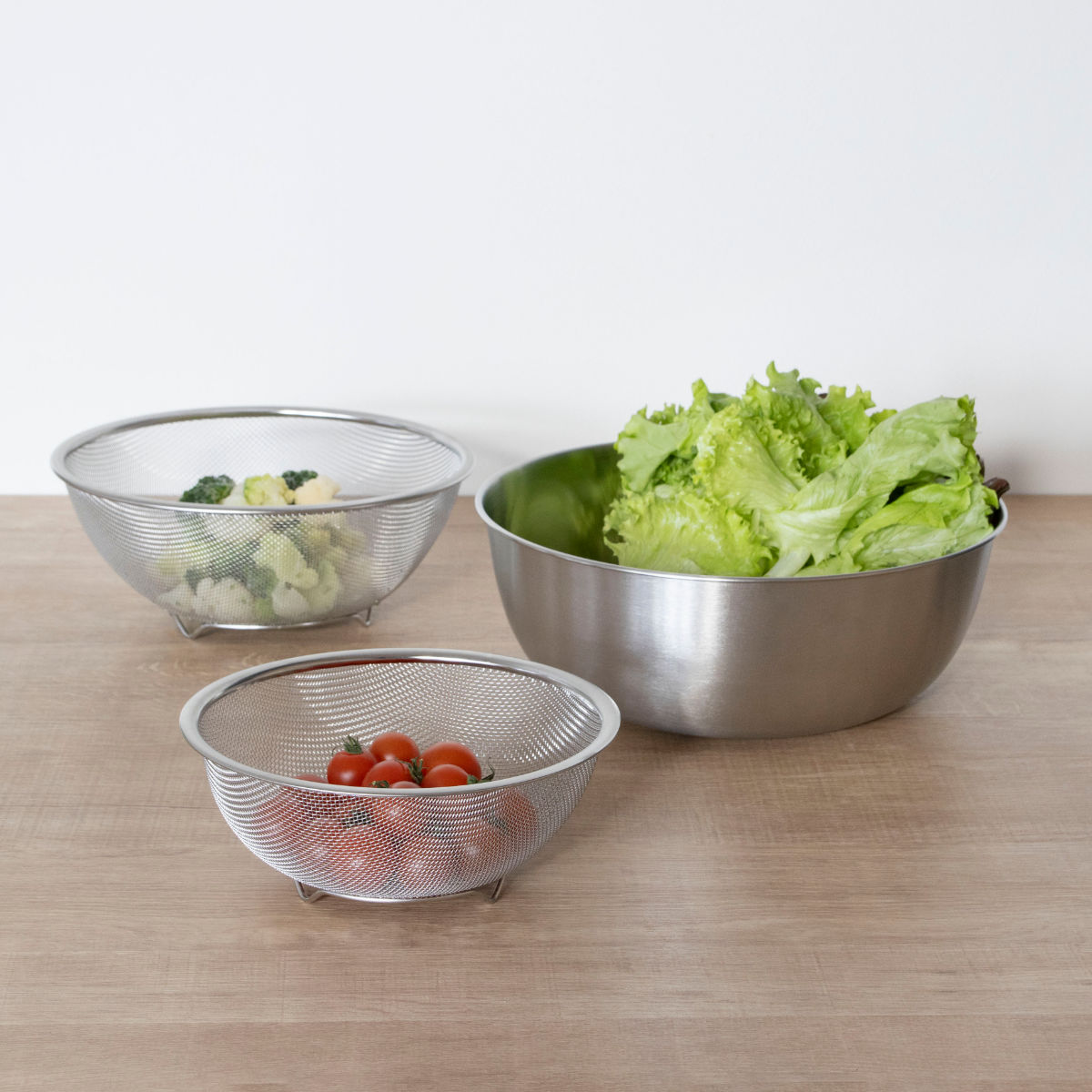 耐久性と使いやすさを兼ね備えた、ステンレス製のザルとボウルのセットです。汚れやニオイが付きにくく、軽くて扱いやすいため、長く清潔に使えます。