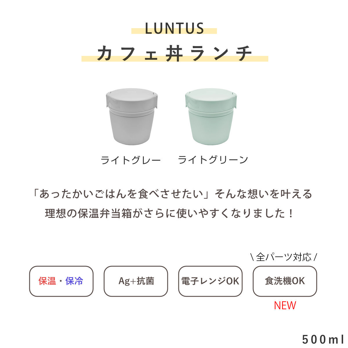 ![]() 保温弁当箱 カフェ丼500ml 専用ランチバッグ付き 【▲このページの商品】 | ![]() 保温弁当箱 カフェ丼620ml 専用ランチバッグ付き | ![]() 保温弁当箱 カフェ丼800ml 専用ランチバッグ付き |