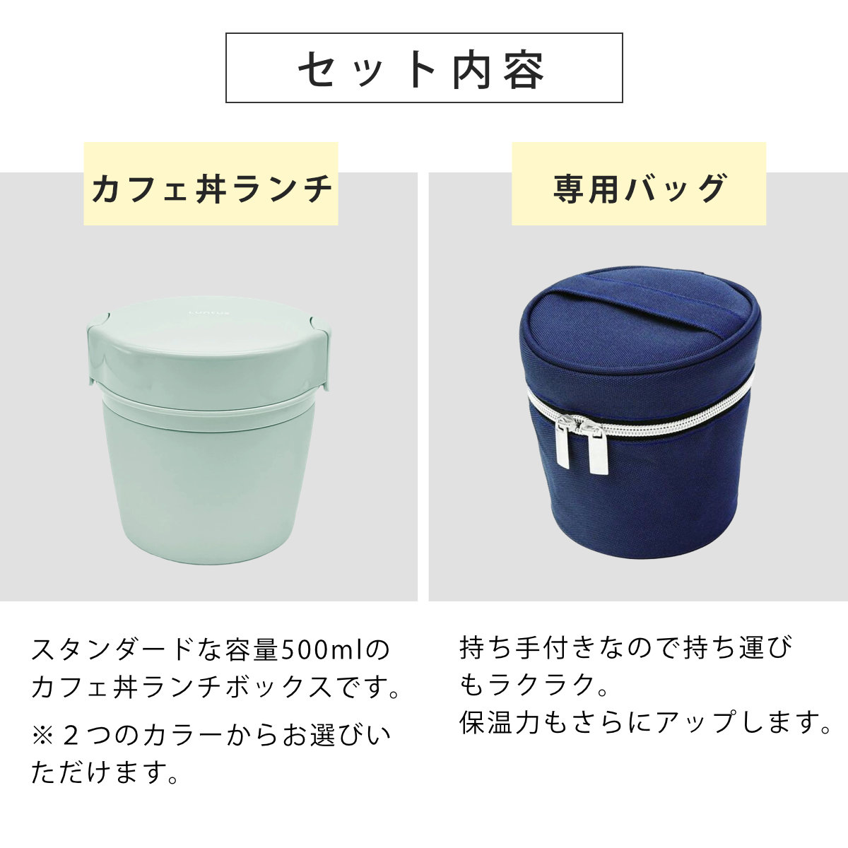 ![]() 500ml専用ランチバッグ(単品) | ![]() 500mlカフェ丼ランチボックスのみ |