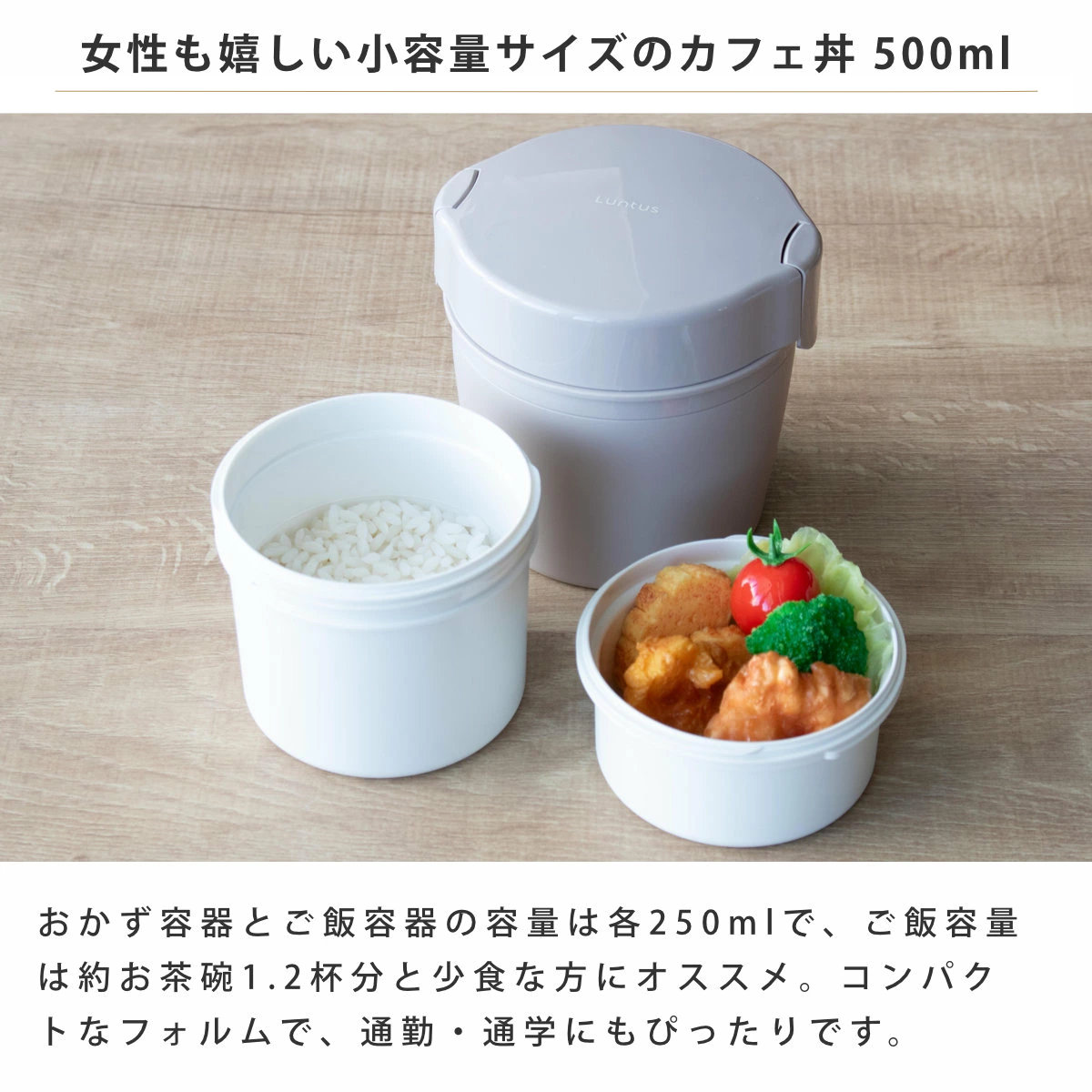 | 容量 | 総容量:500ml ご飯容器:250ml、おかず容器:250ml |