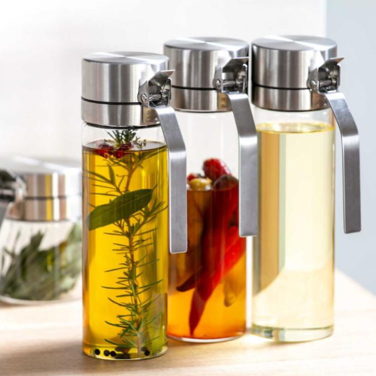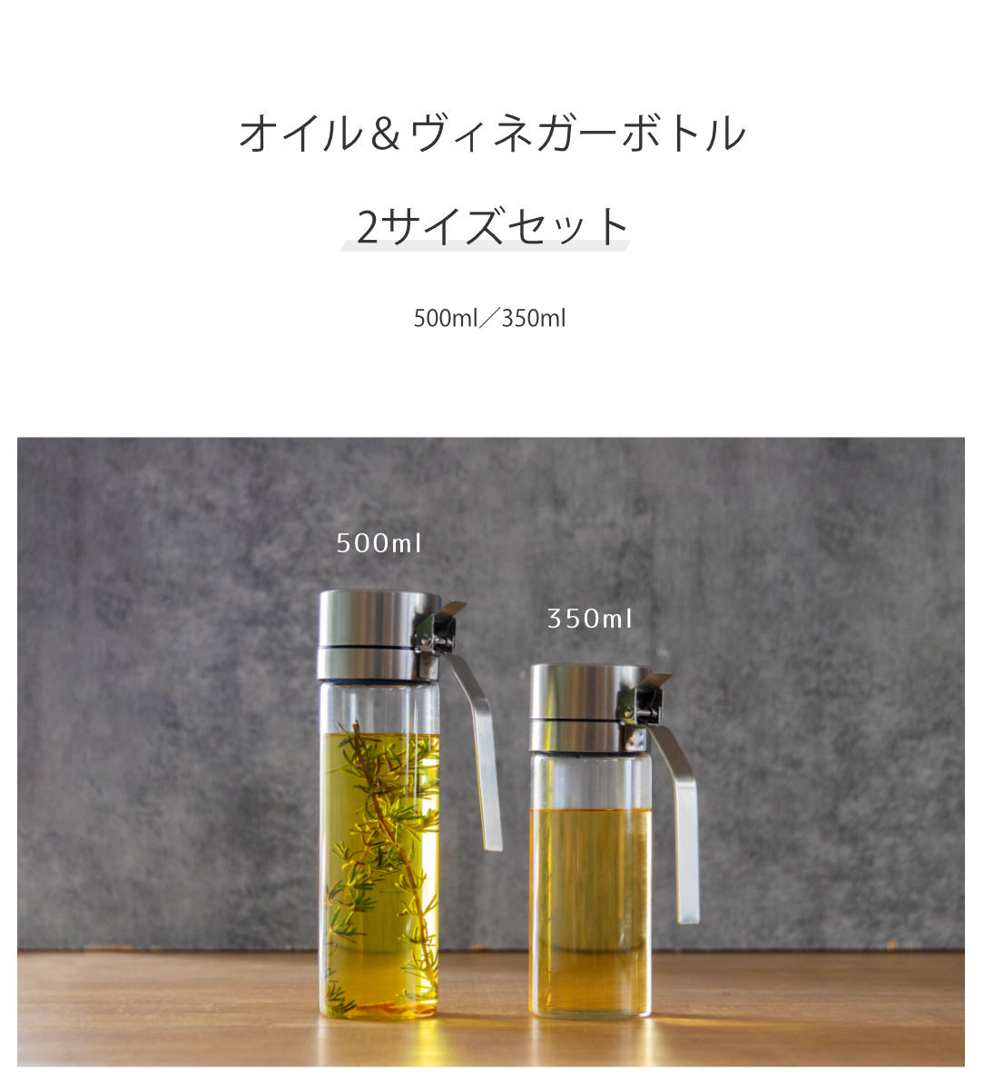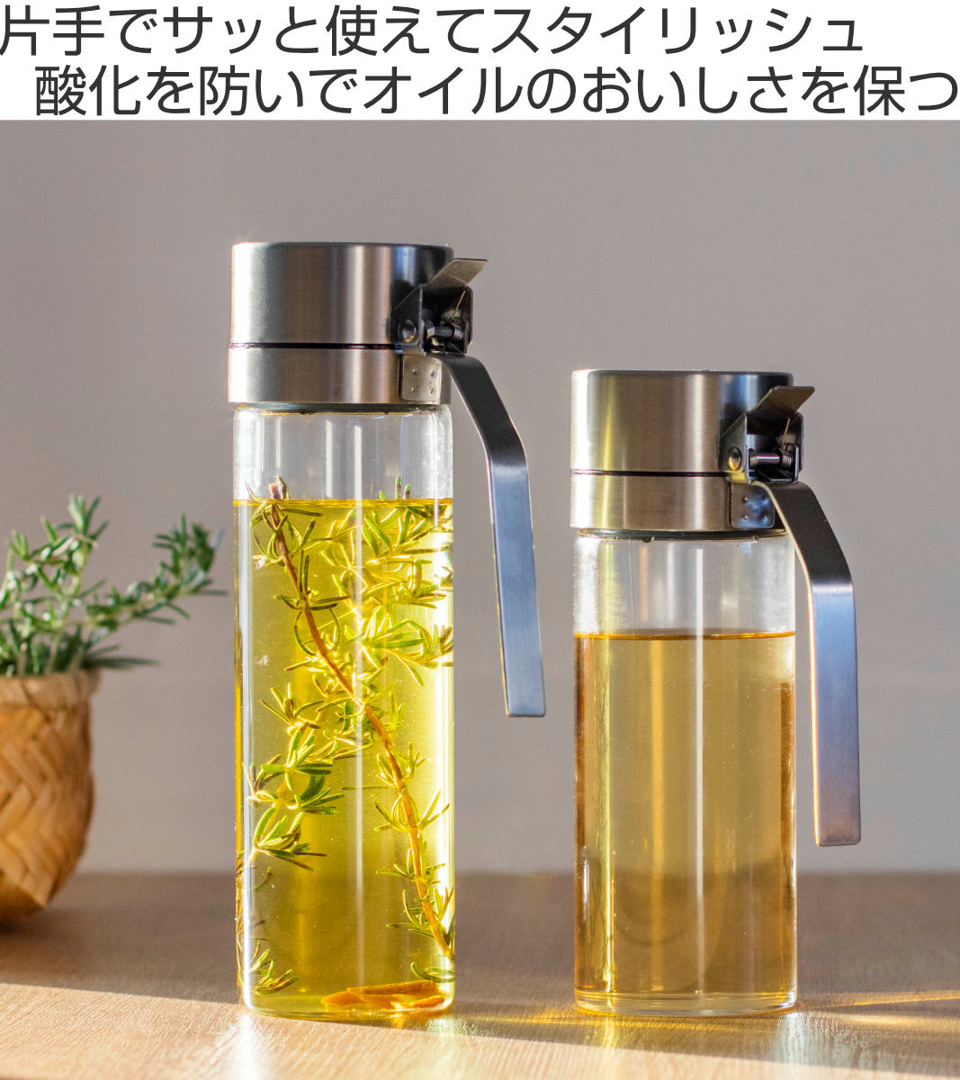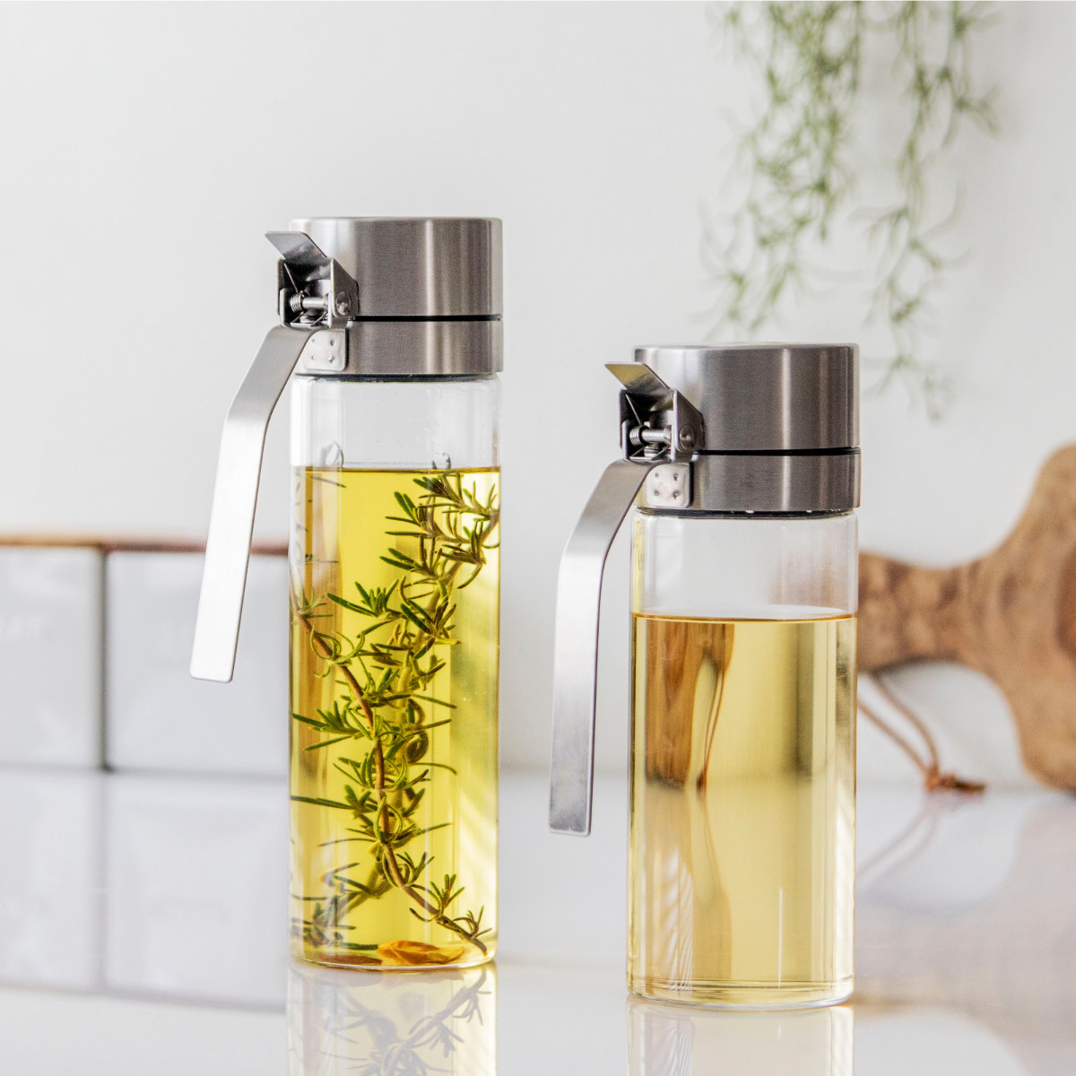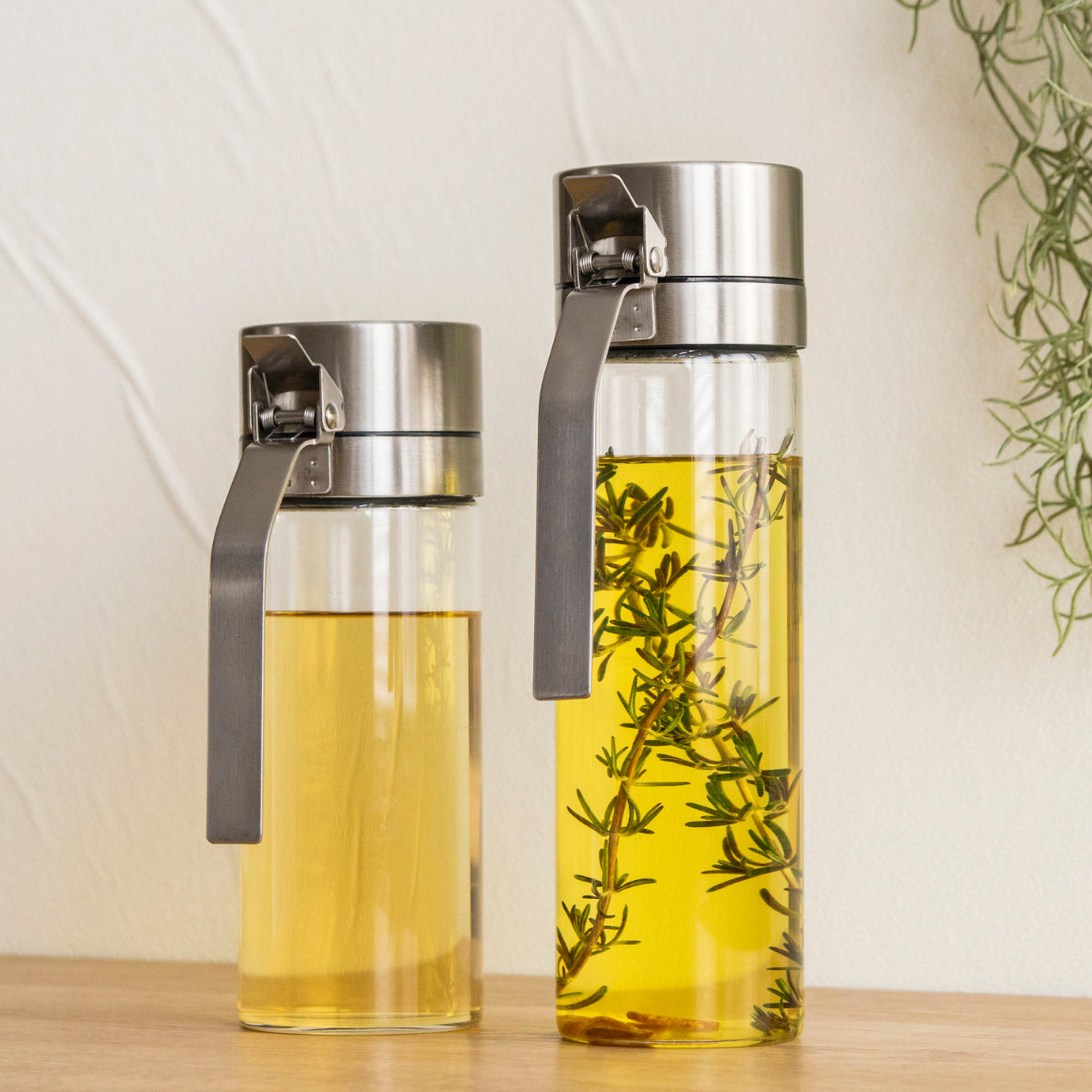 オイルの大敵である酸化を防いでくれる、ガラス製オイルボトルです。使い勝手抜群のスタイリッシュなデザインは、キッチンのみならず食卓でもデイリーに活躍。オイルの鮮度を保ち、毎日のおいしい食事をアシストします。