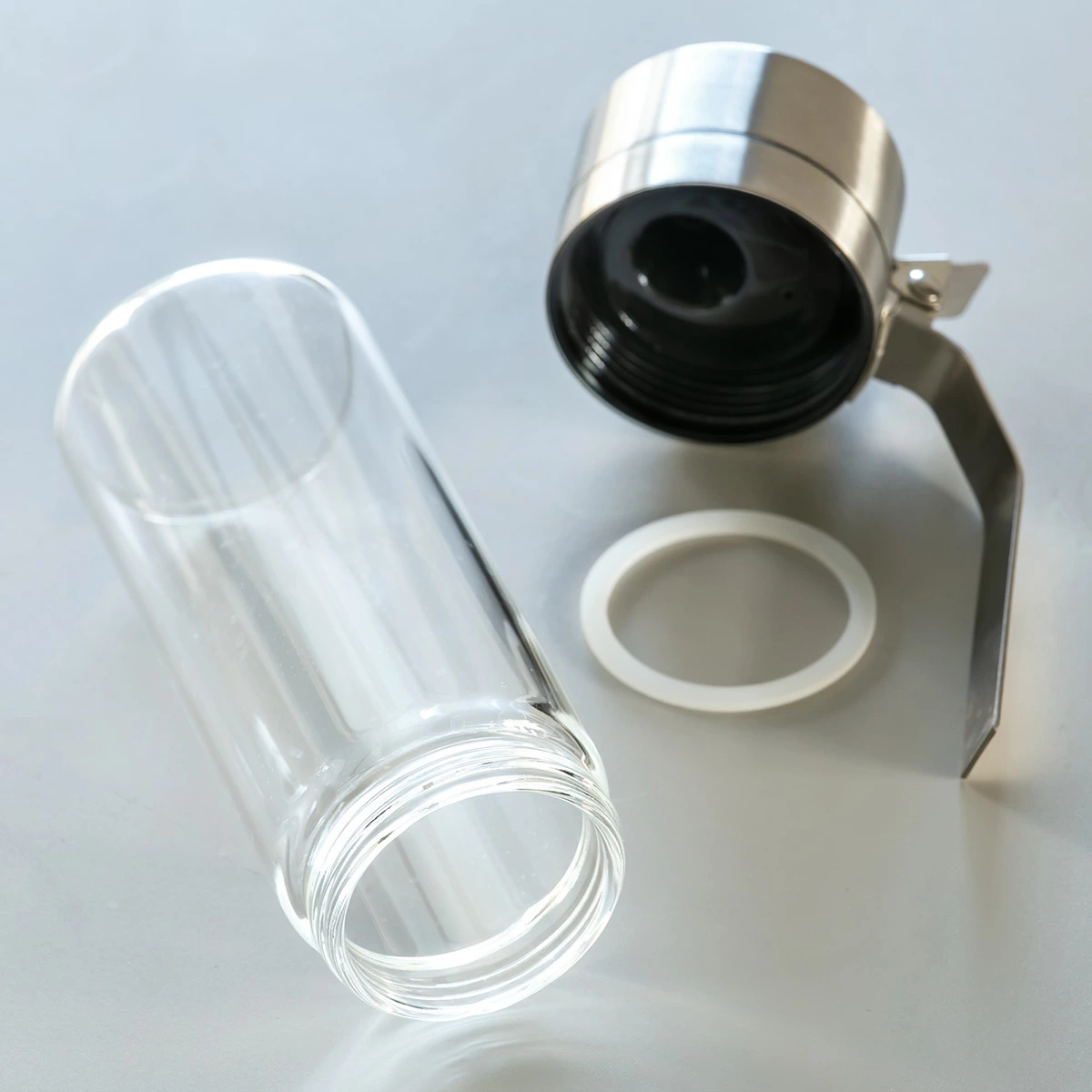 | 材質 | ボトル:ホウケイ酸ガラス フタ:18-8ステンレススチール、PP、シリコン |